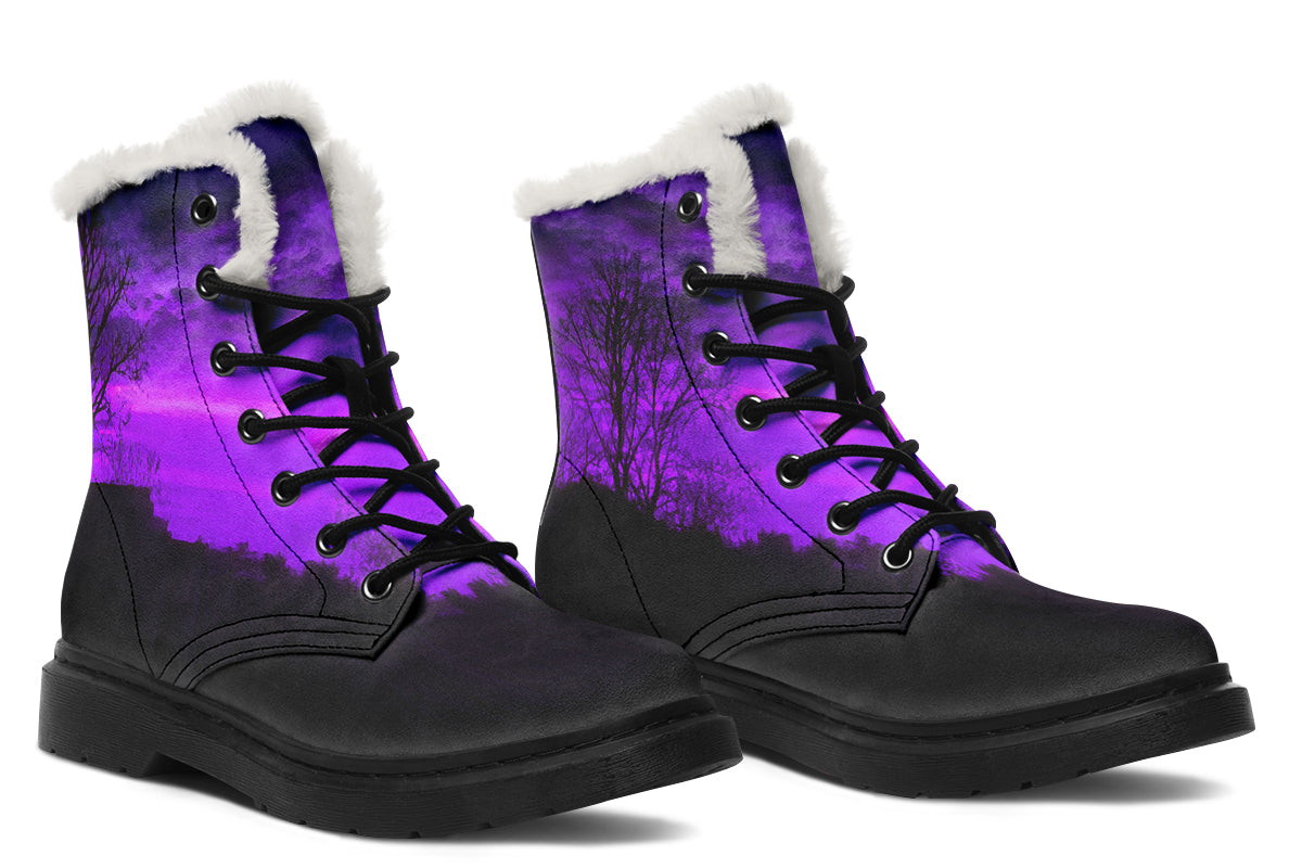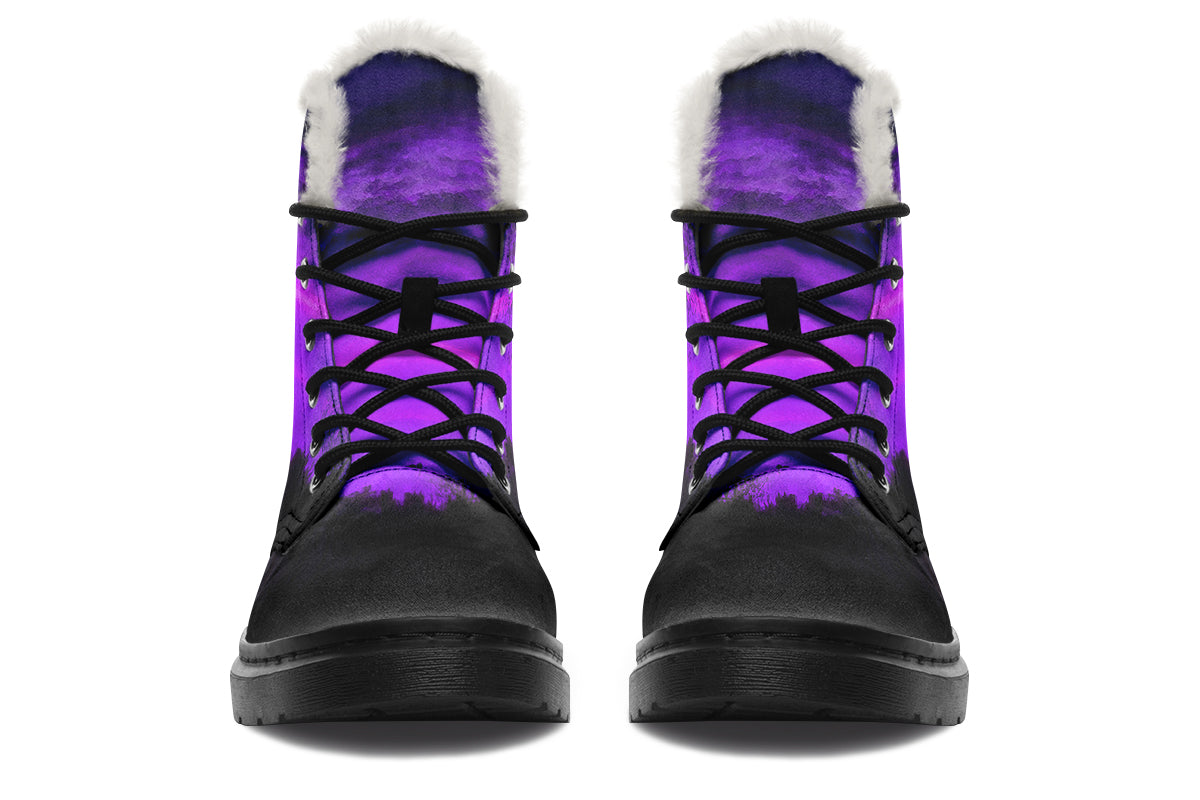 Bring Y2K energy into your winter wardrobe with the ANTIBrand 1999 Fleece Lined Boots. Featuring a bold purple-and-black landscape design, these fleece lined boots fuse nostalgia with goth aesthetics. Perfect for making a statement while staying warm and comfortable. Made to order – please allow 3–5 weeks.
