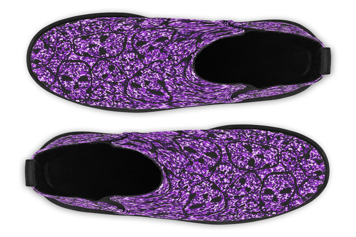 Step into chaos and colour with the ANTIBrand Amethyst Annihilation Chelsea Boots. Featuring a striking purple skull pattern that radiates energy, these boots are designed for alternative souls who thrive in bold style. Built with durable micro suede and a flexible rubber outsole, they combine rebellious design with everyday comfort.