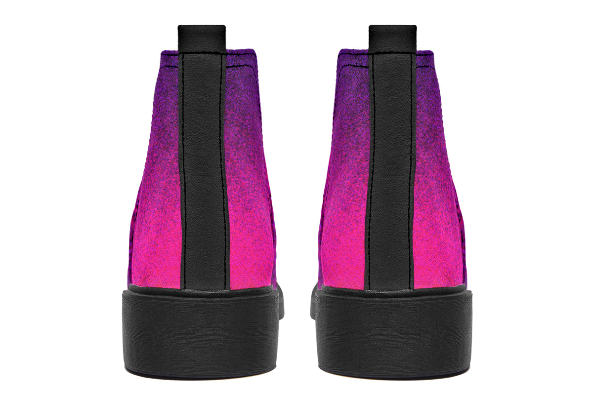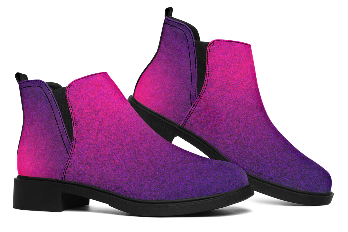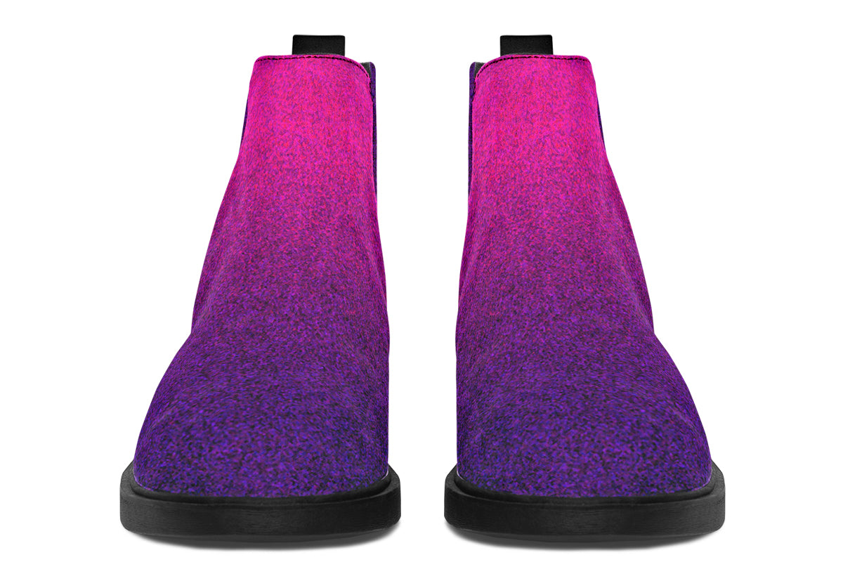 Radiate alternative energy with the ANTIBrand All About the Aura Chelsea Boots. Featuring a stunning ombré fade in deep pink and purple, these boots are made for souls who shine in the dark. Comfortable, stylish, and unapologetically unique.