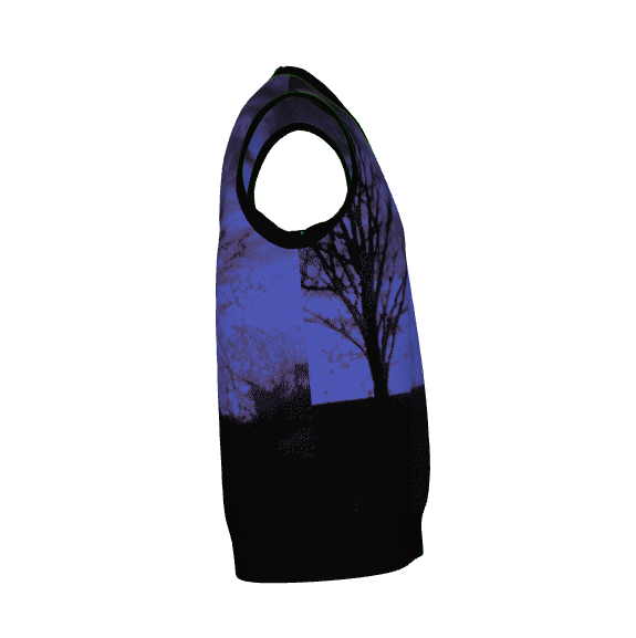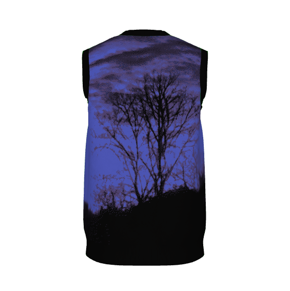 The ANTIBrand “1999” Knitted Vest features Kate’s original artwork developed from her own photograph of the Lichfield skyline, reimagined here as a striking knitted design. Moody twilight tones, silhouetted trees and deep shadows give this piece a calm but powerful presence - a quiet statement layer for gothic and alternative wardrobes.