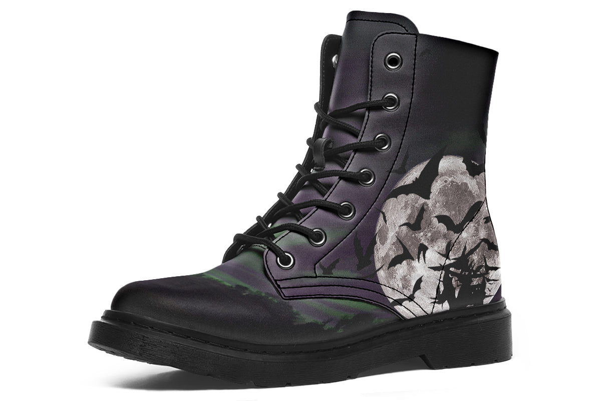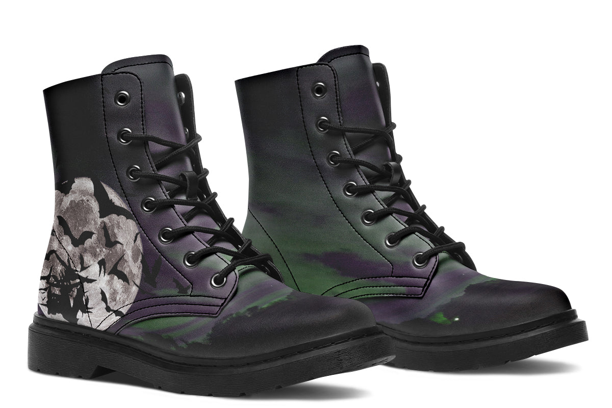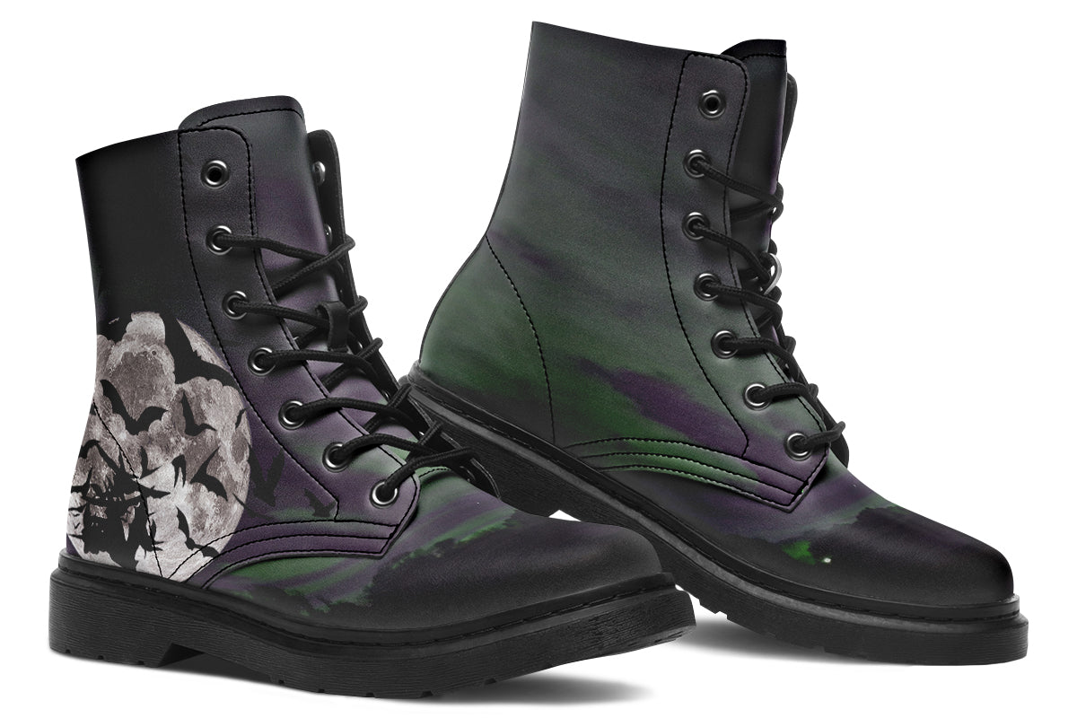 When the moon rises, so do you. The Nightbloom Skies Boots from ANTIBrand feature a full moon shrouded in swirling clouds and a flurry of bats—an atmospheric nod to midnight wanderers and creatures of the night.