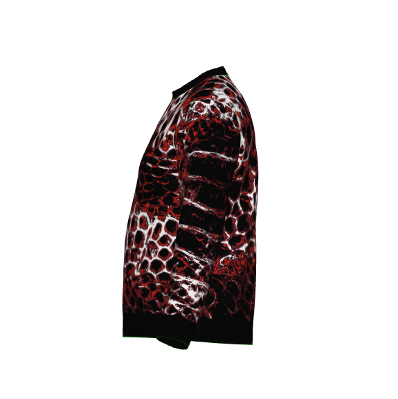 The ANTIBrand Basilisk Skin Jumper is part of our Shedding Skin collection - a series inspired by transformation, mutation, and the darker beauty of evolution. This design features a striking, high-contrast reptilian texture in deep blood reds, black, and bone white, knitted directly into the fabric for a truly tactile, premium finish.