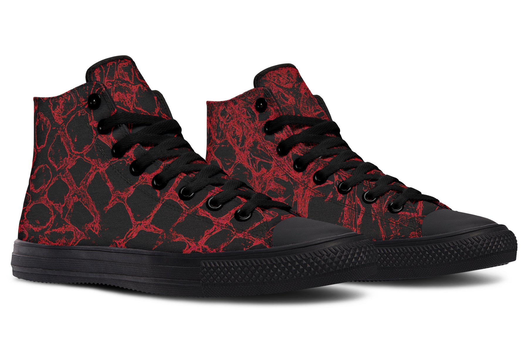 Black canvas, blood-red chaos. The ANTIBrand Shedding Skin Bloodscale Hightops wrap a classic high-top silhouette in a fierce, distressed scale-style print — like something dragged out of a crypt and worn straight to the streets.
