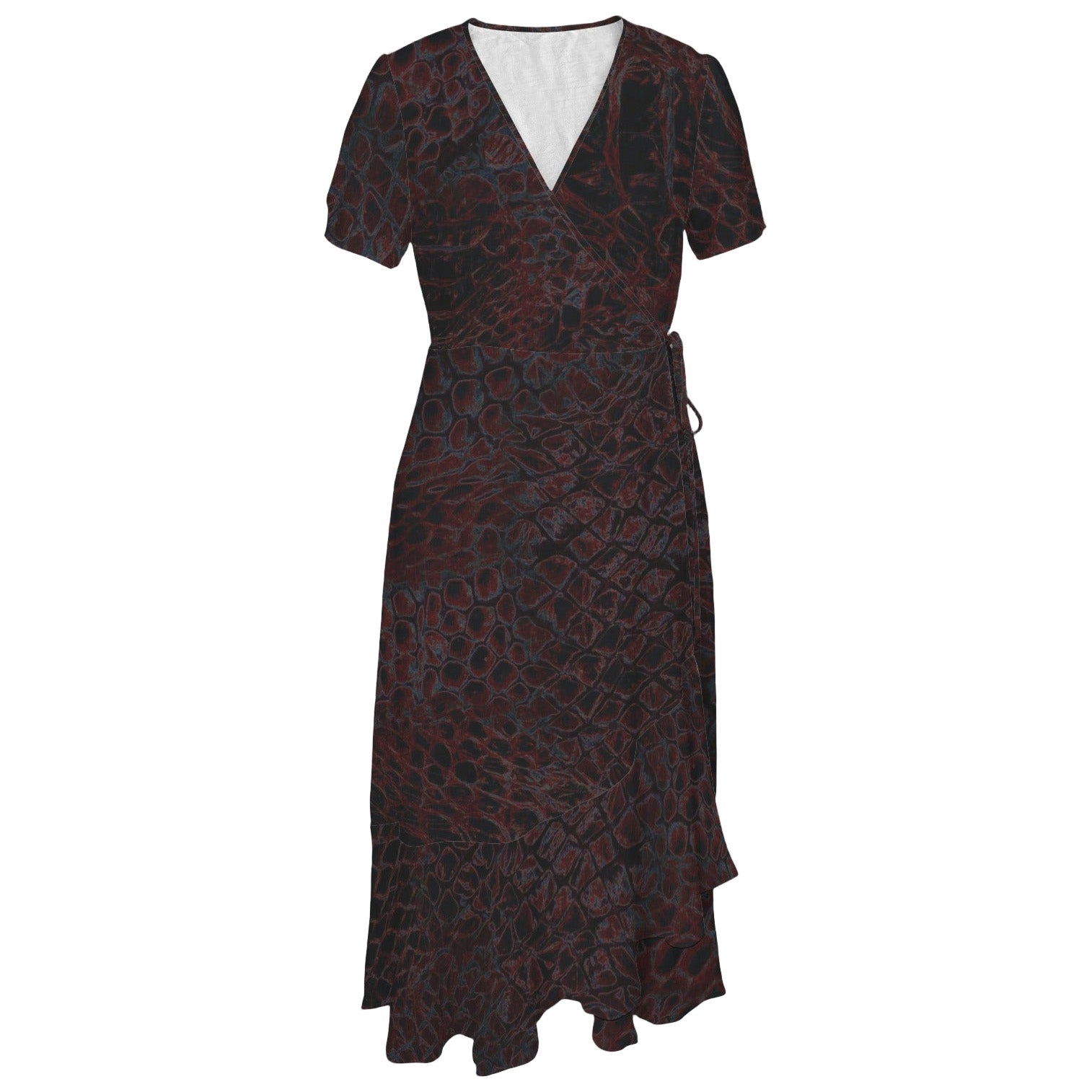 Channel the power of ancient creatures with the ANTIBrand Shedding Skin Wyvern Skin Wrap Dress. Draped in a deep, smokey reptilian pattern, this wrap-style maxi dress blends dark elegance with an undeniably flattering silhouette. The fabric mimics the look of scaled armour, offering a sophisticated gothic edge without sacrificing comfort.