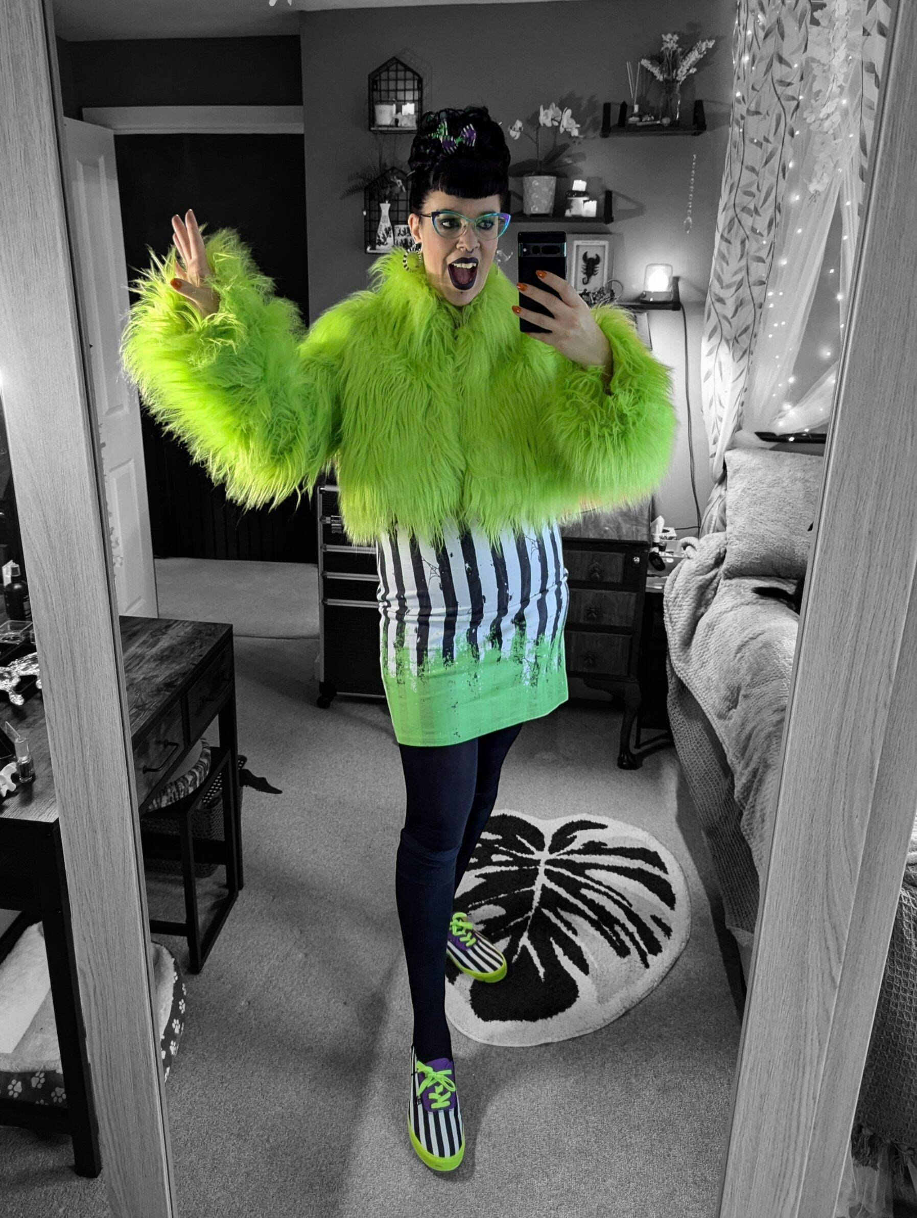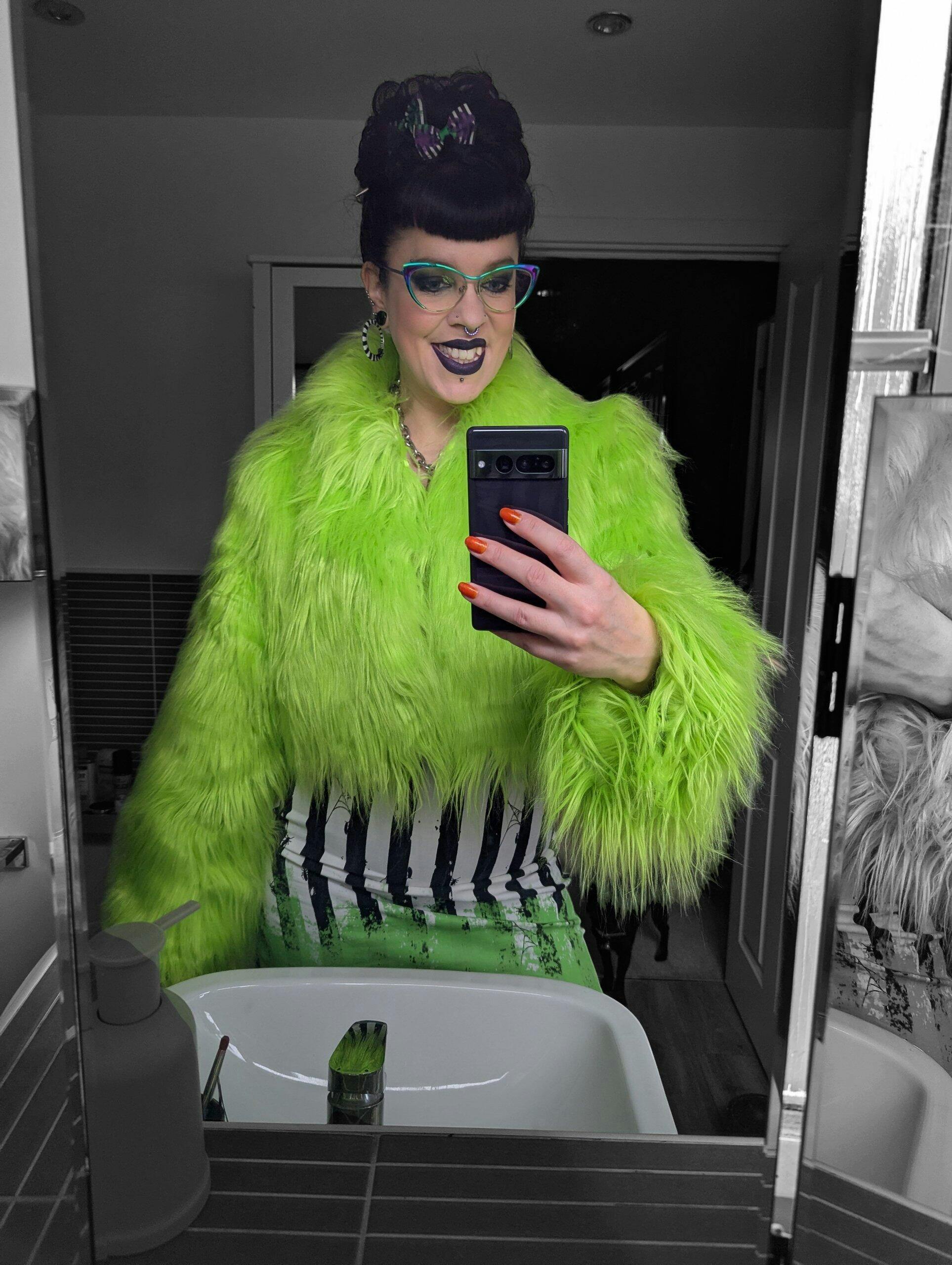 Banned Apparel Glacia Neon Green Faux Fur Jacket
