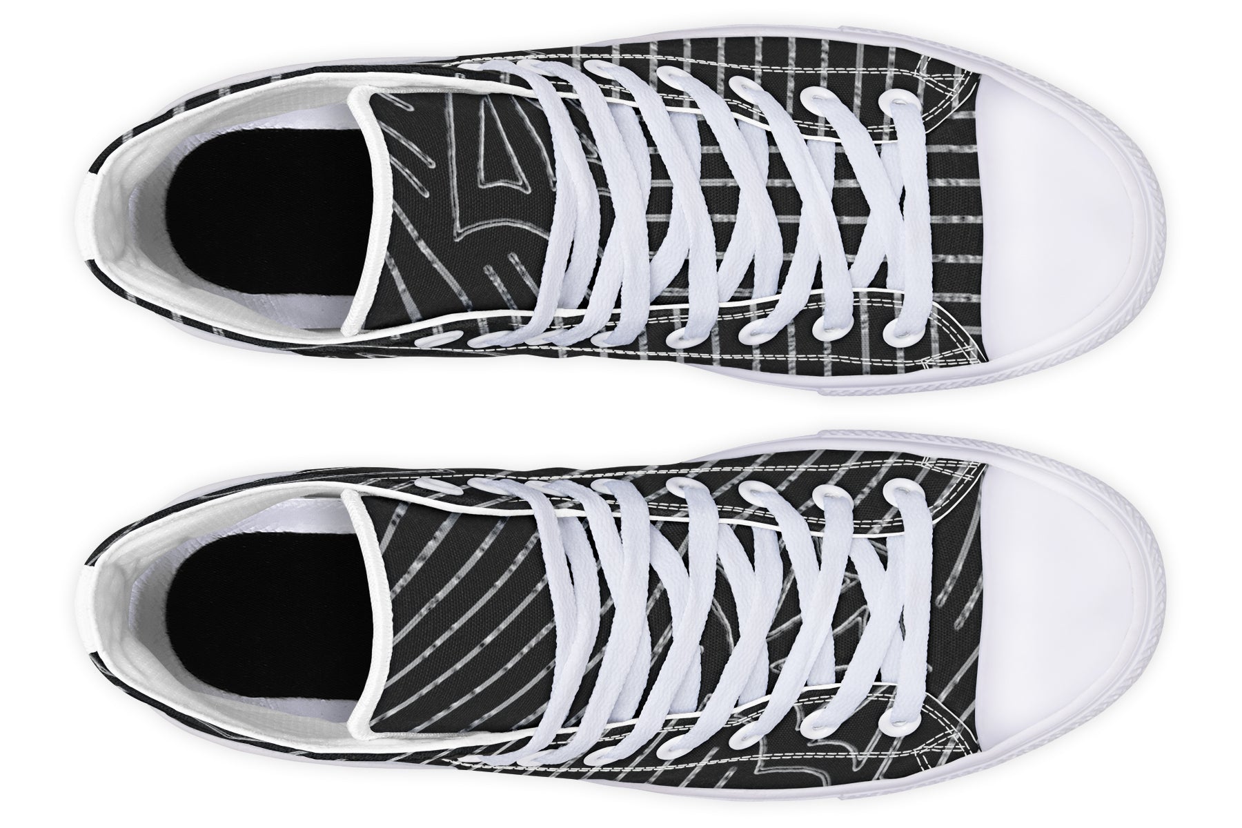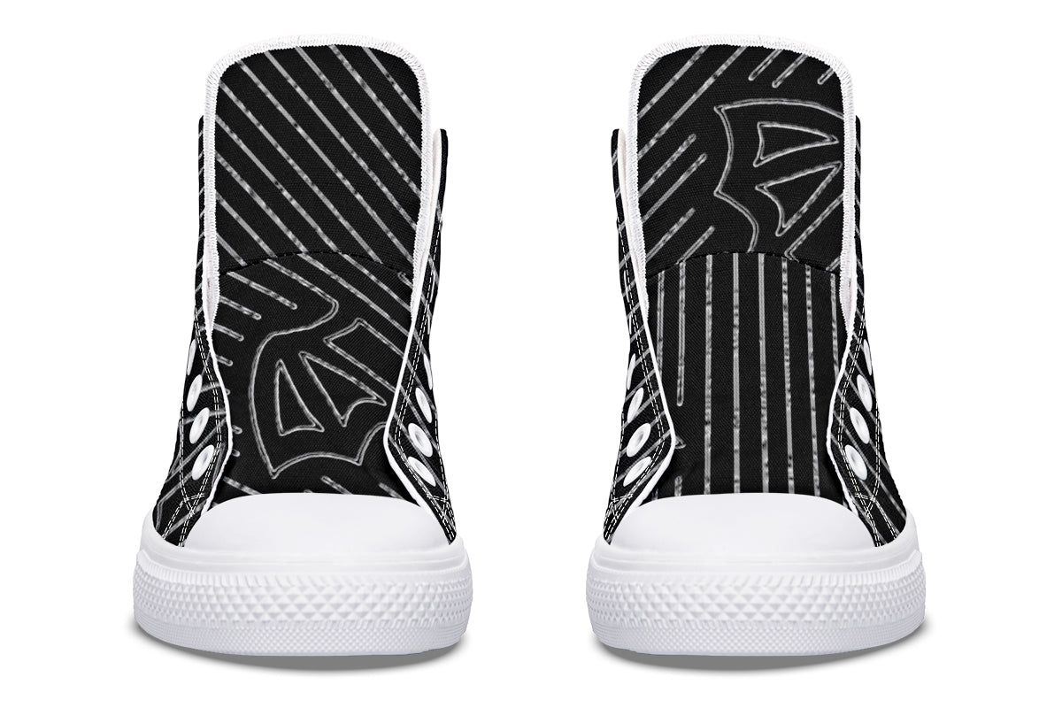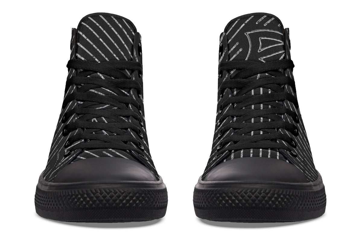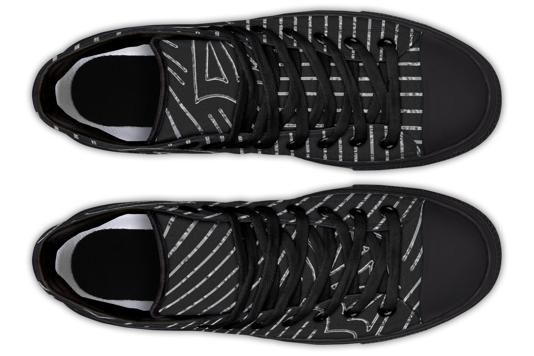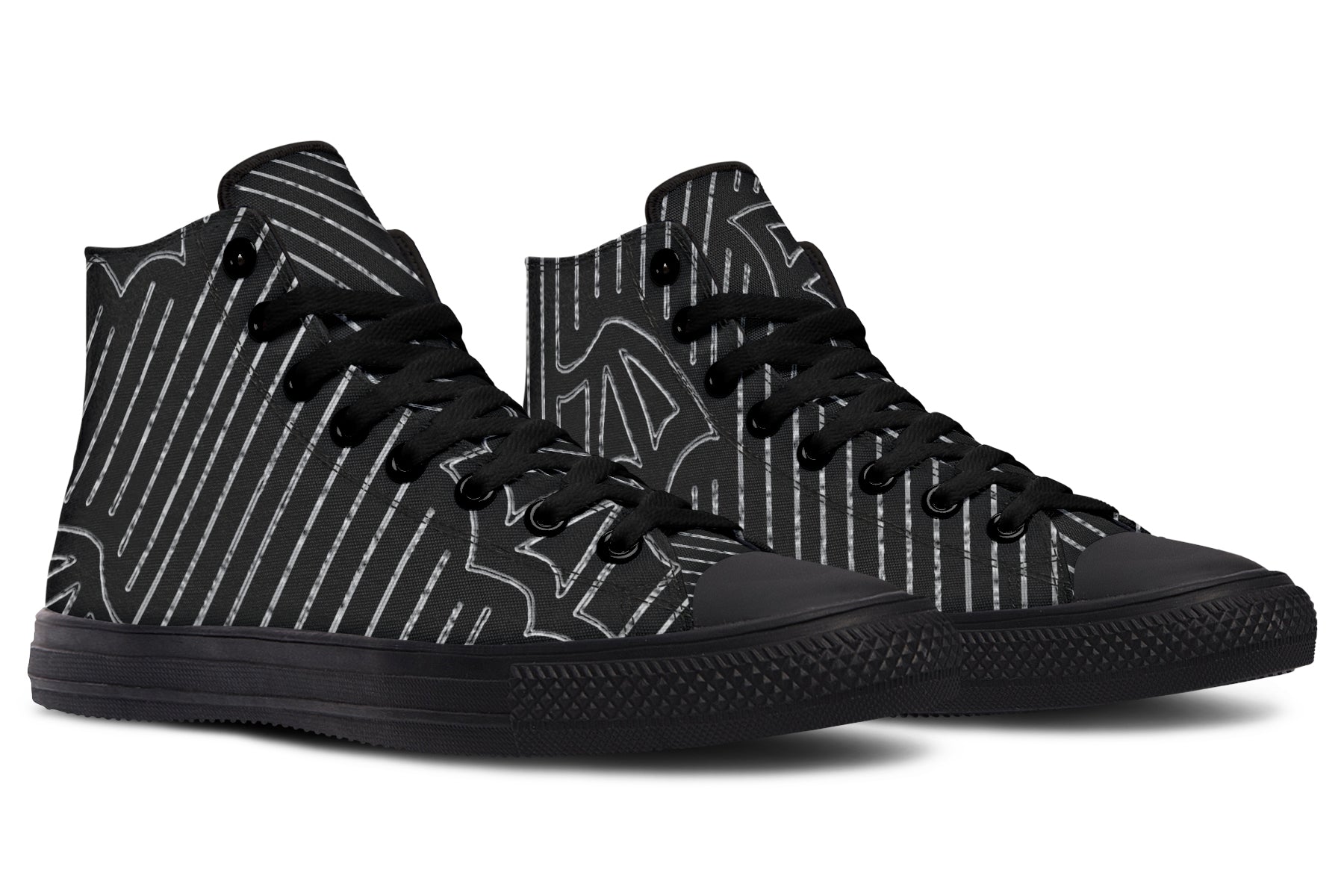 Bring your goth aesthetic to the streets with the ANTIBrand Big Bat Haus Pinstripe High Tops – Black. Designed with bold white gothic patterns and pinstripe detailing, these trainers combine dark minimalism with alternative streetwear edge. Their high-top construction provides support, while the durable canvas ensures they’re made to last.