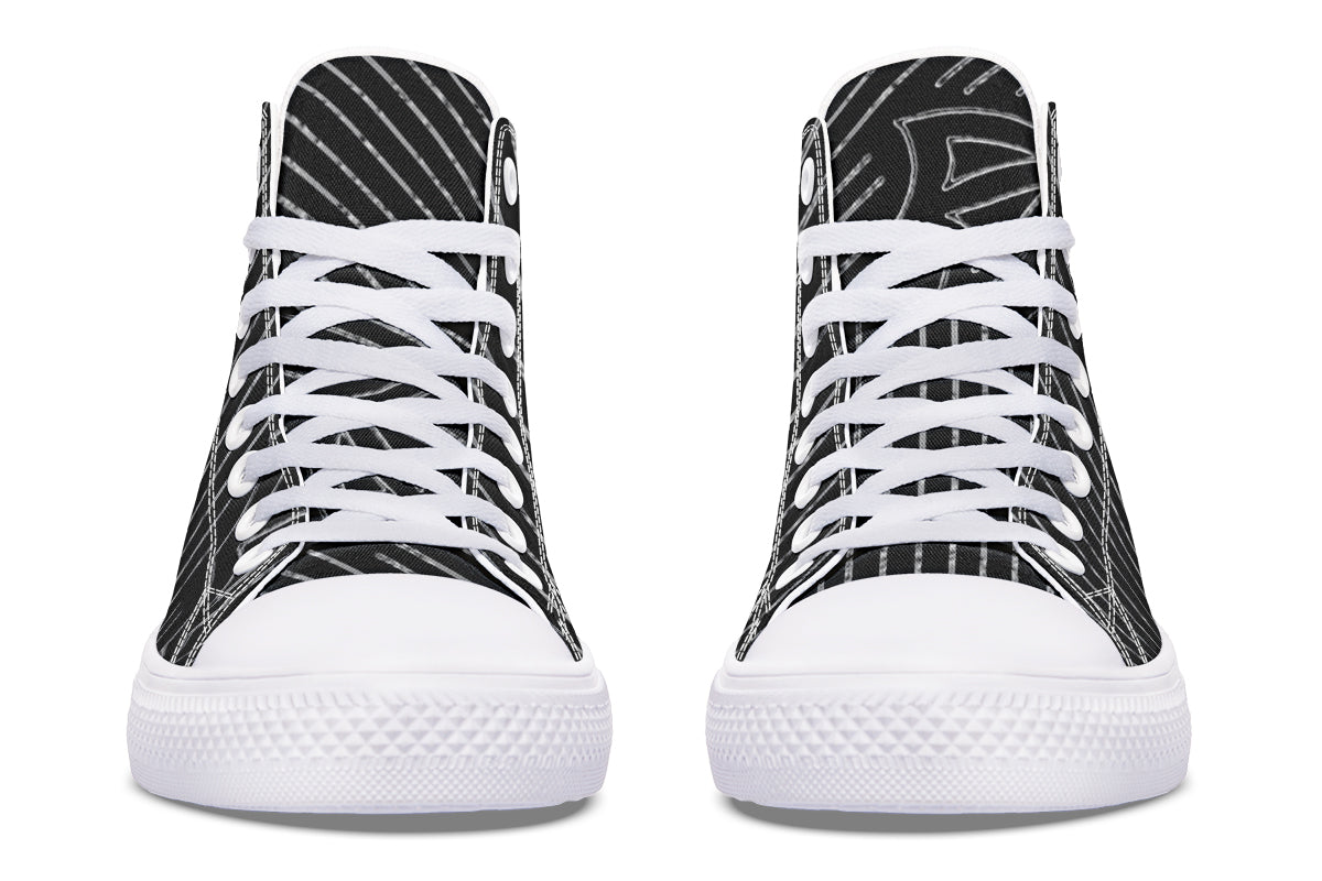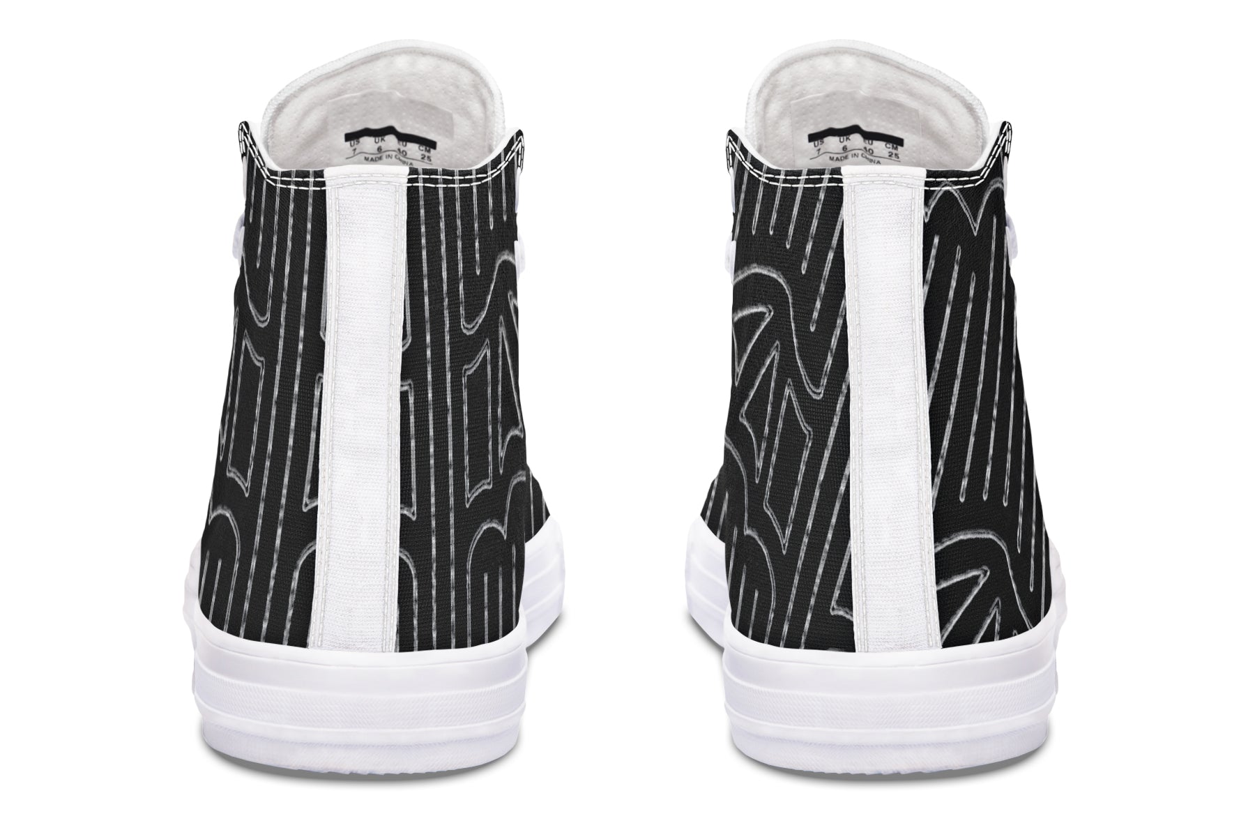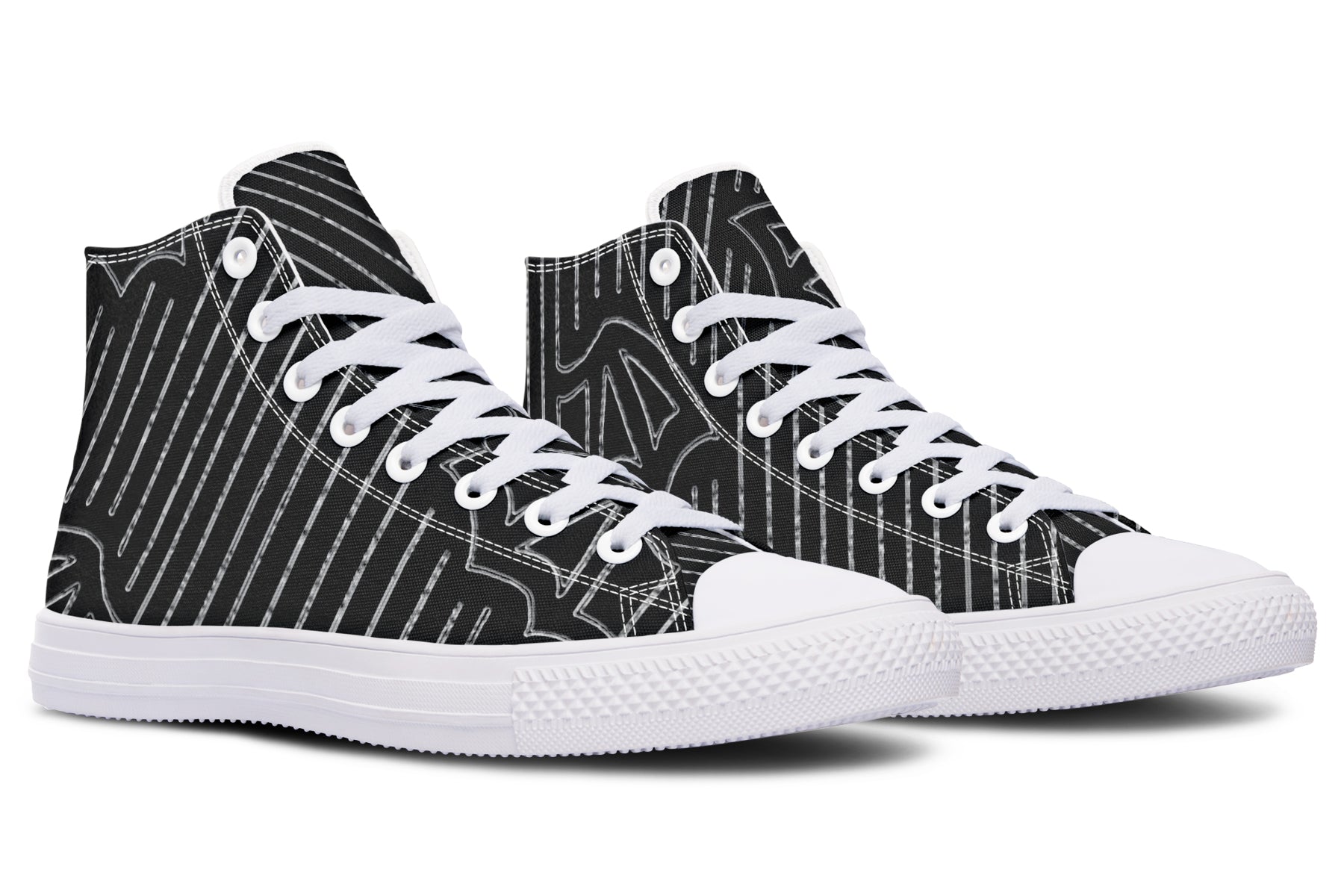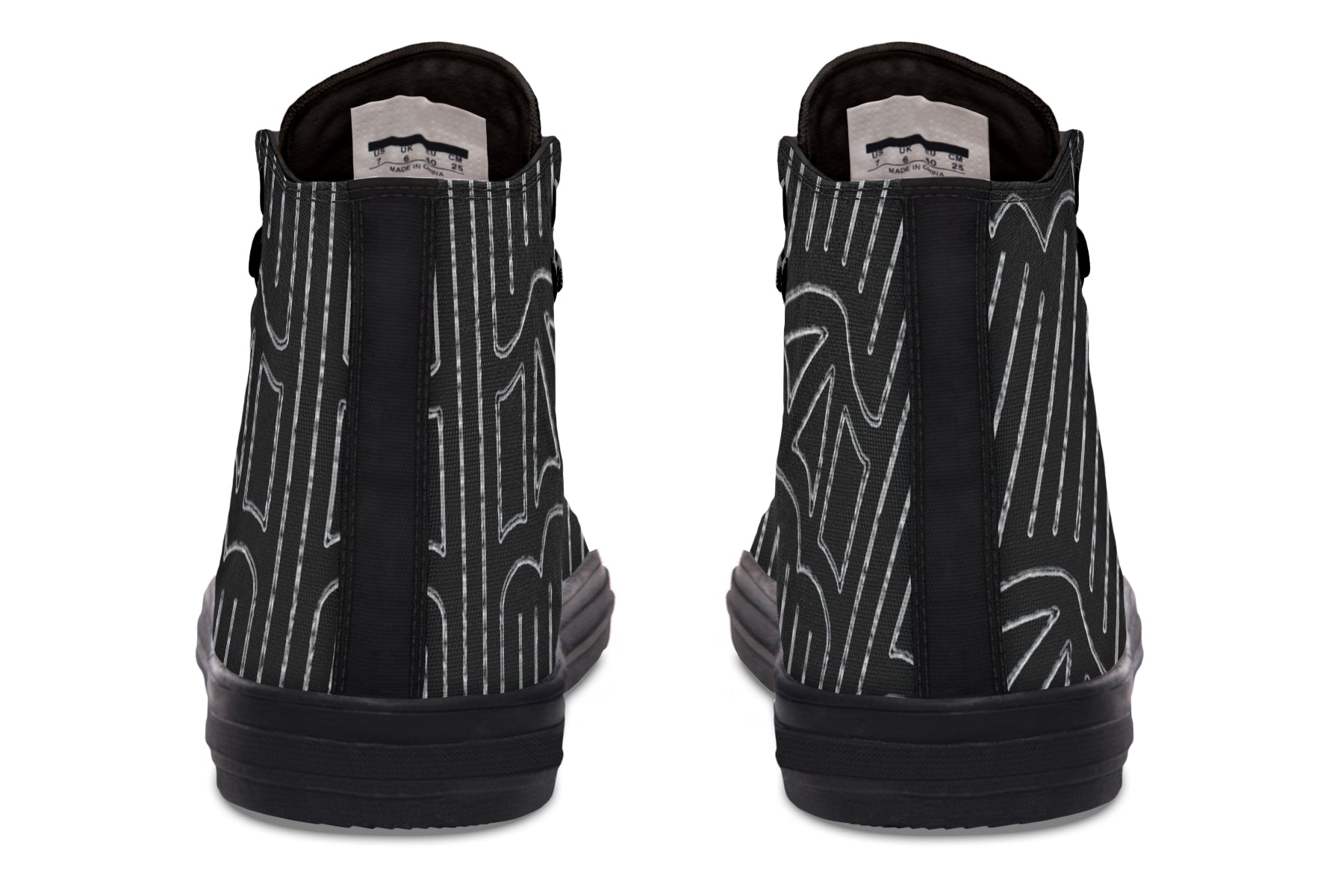 Bring your goth aesthetic to the streets with the ANTIBrand Big Bat Haus Pinstripe High Tops – Black. Designed with bold white gothic patterns and pinstripe detailing, these trainers combine dark minimalism with alternative streetwear edge. Their high-top construction provides support, while the durable canvas ensures they’re made to last.