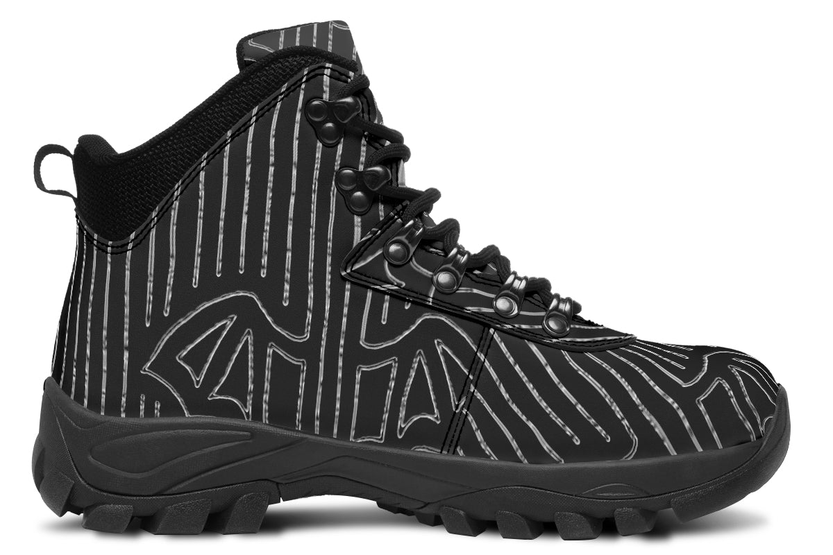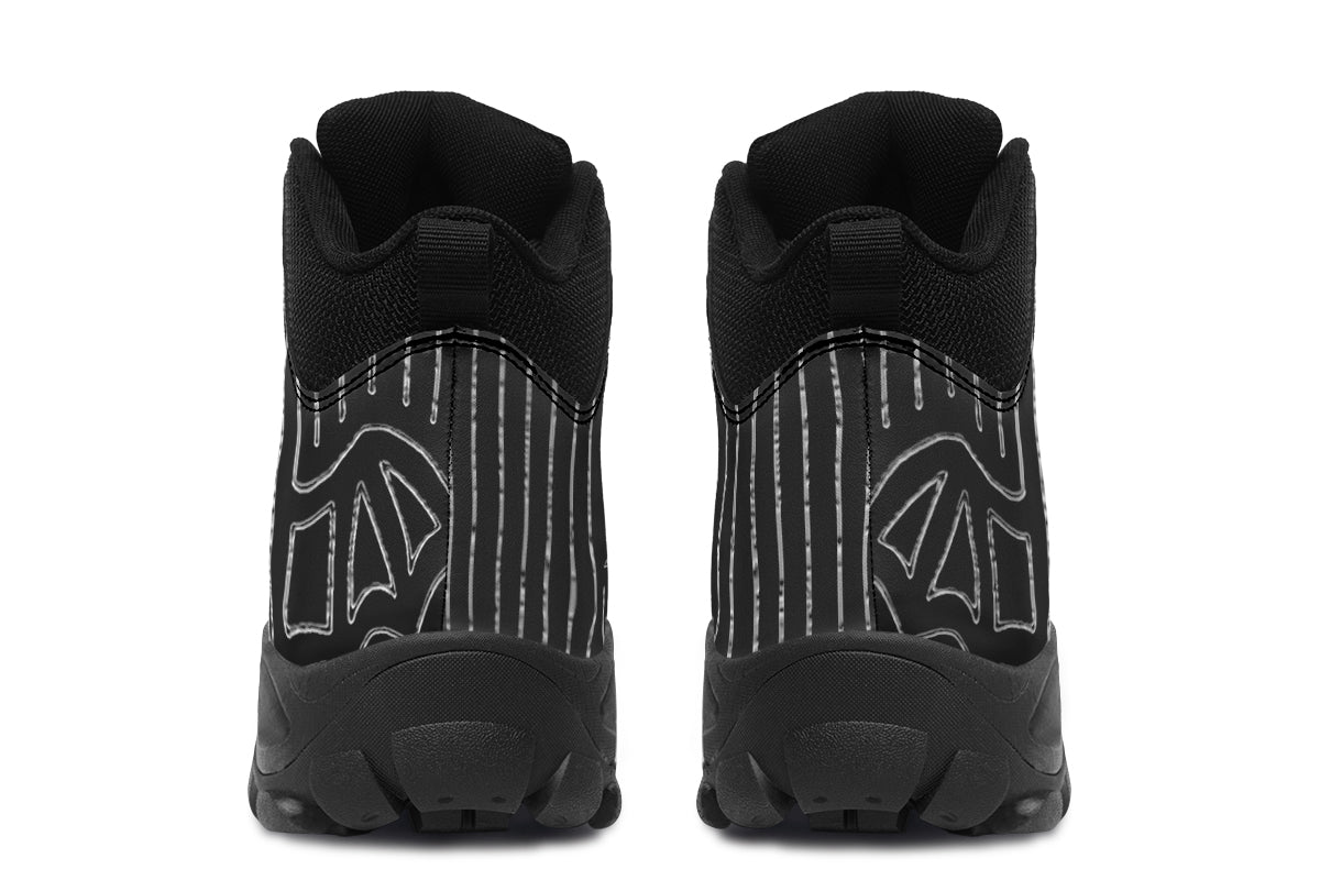 Show off your dark elegance with the ANTIBrand Big Bat Haus Pinstripe Walking Boots. Featuring striking bat motifs layered over sharp monochrome pinstripes, these boots are bold, unique, and ideal for the alternative soul.
