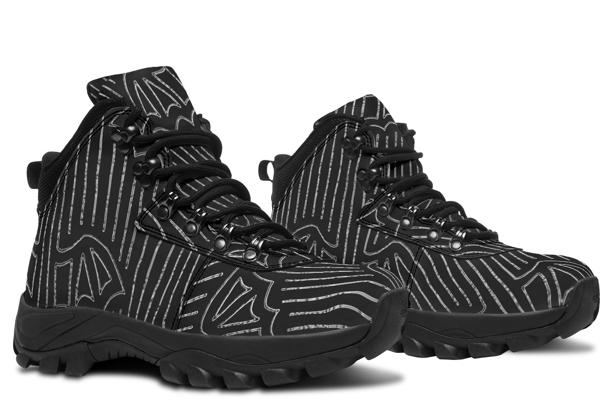 - Custom printed boots with bat pinstripe print