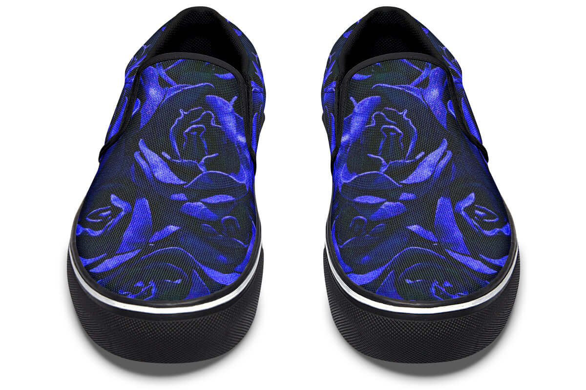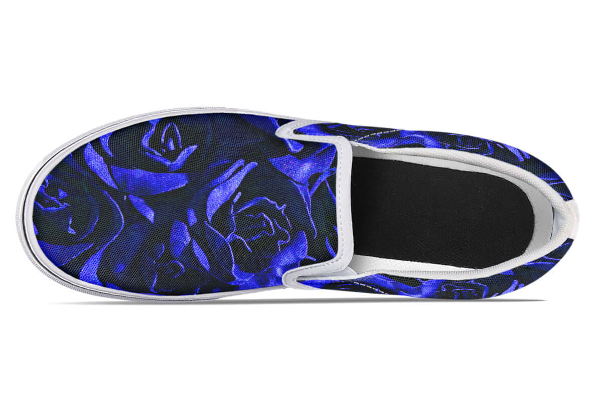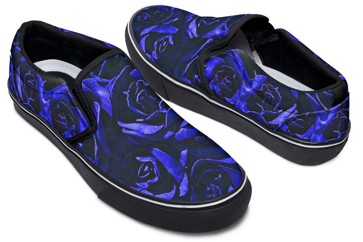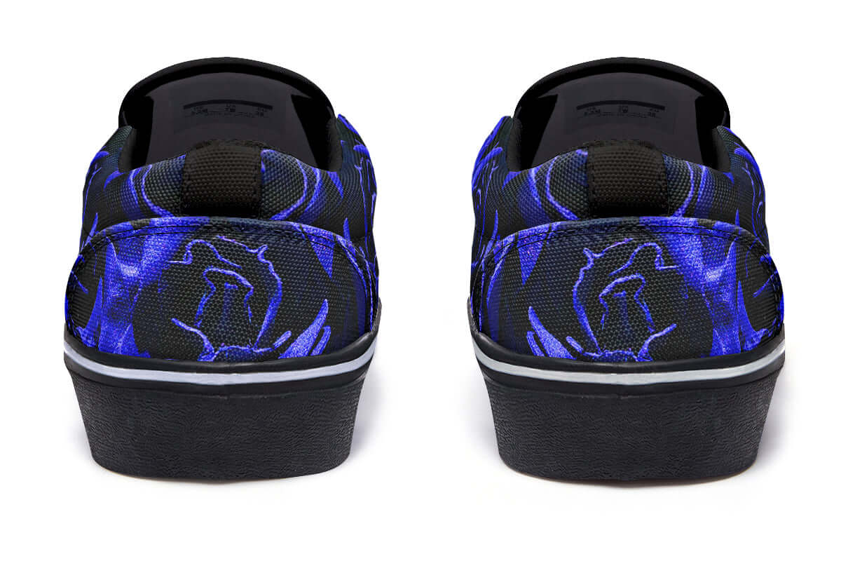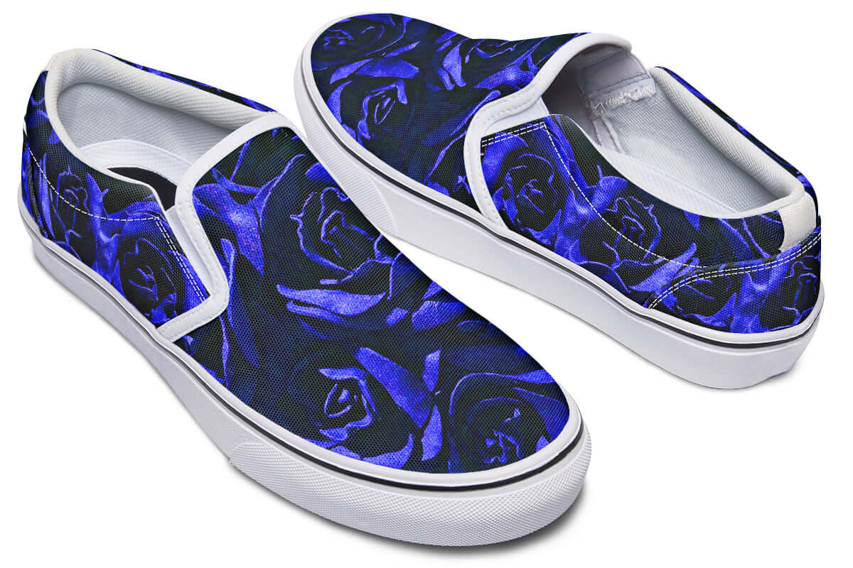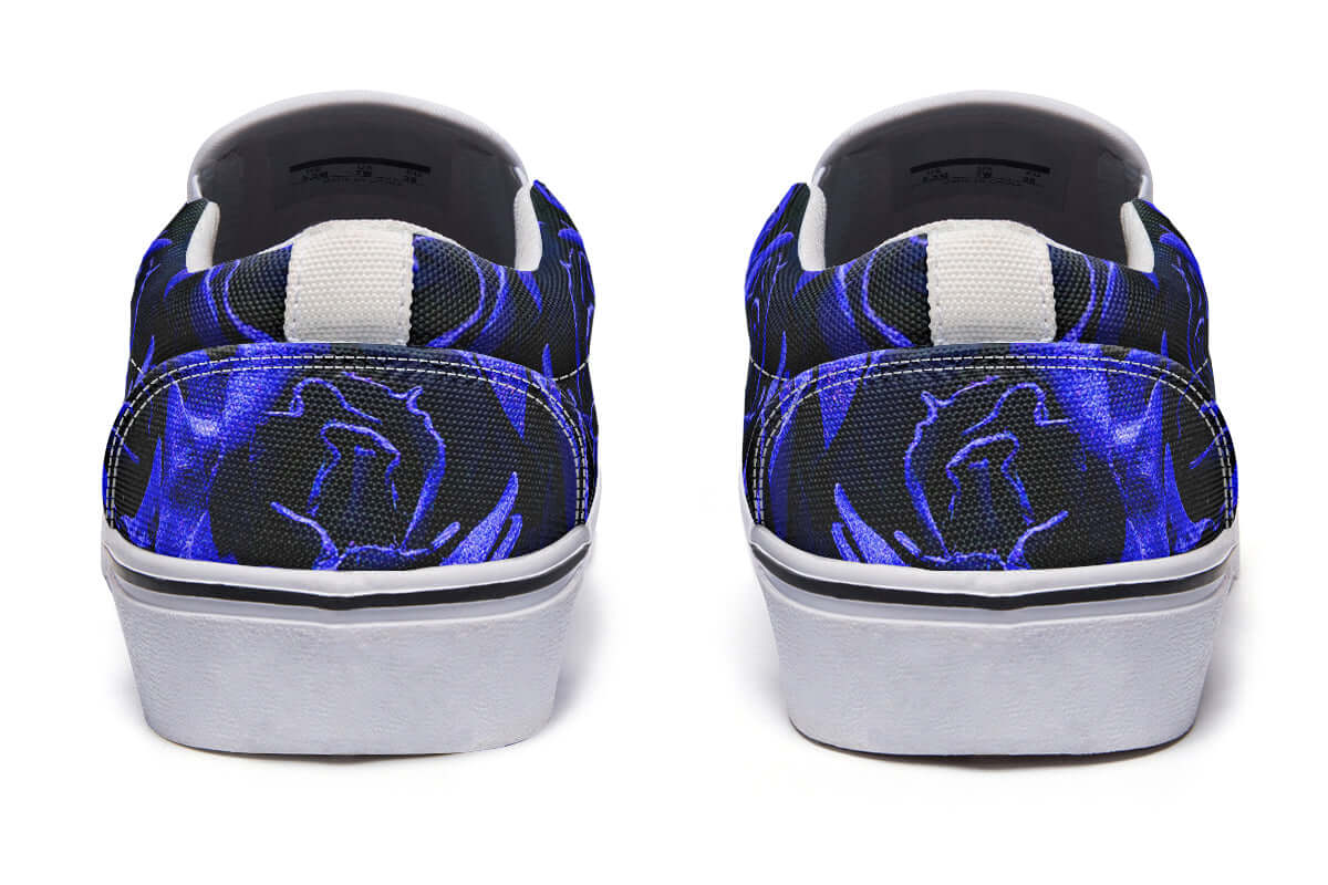 Step into effortless goth style with the Blue Roses Canvas Slip-On Trainers from ANTIBrand. These bold floral kicks combine the classic convenience of a slip-on silhouette with a rich, gothic blue rose print that makes a statement.