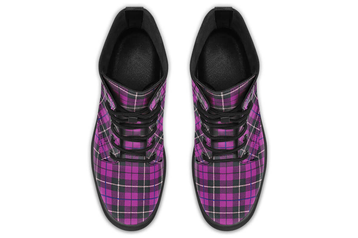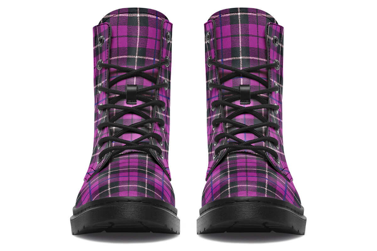 For the rebels in plaid. These Pink Tartan Vegan Boots take a classic punk staple and crank it up with vibrant pink and black check. A bold and playful edge for your alt wardrobe.