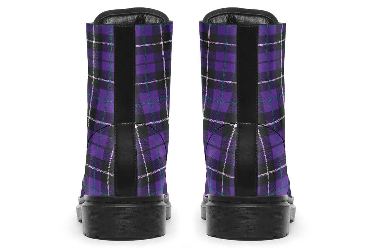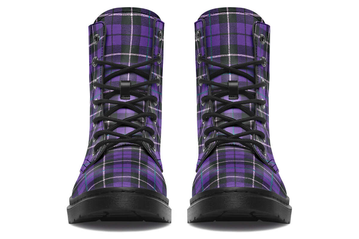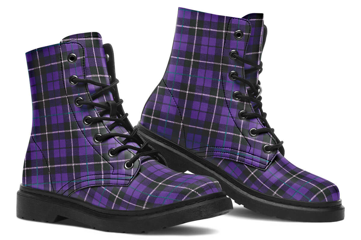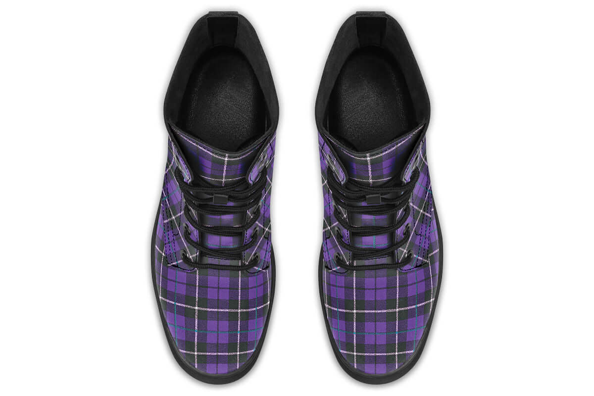 Classic tartan with a dark twist. These Purple Tartan Vegan Boots serve punk attitude in a rich violet check. Tough enough for stomping, bold enough for standing out.