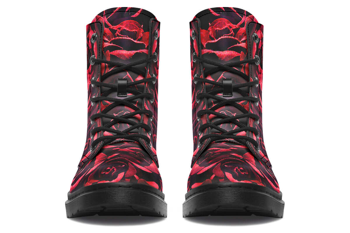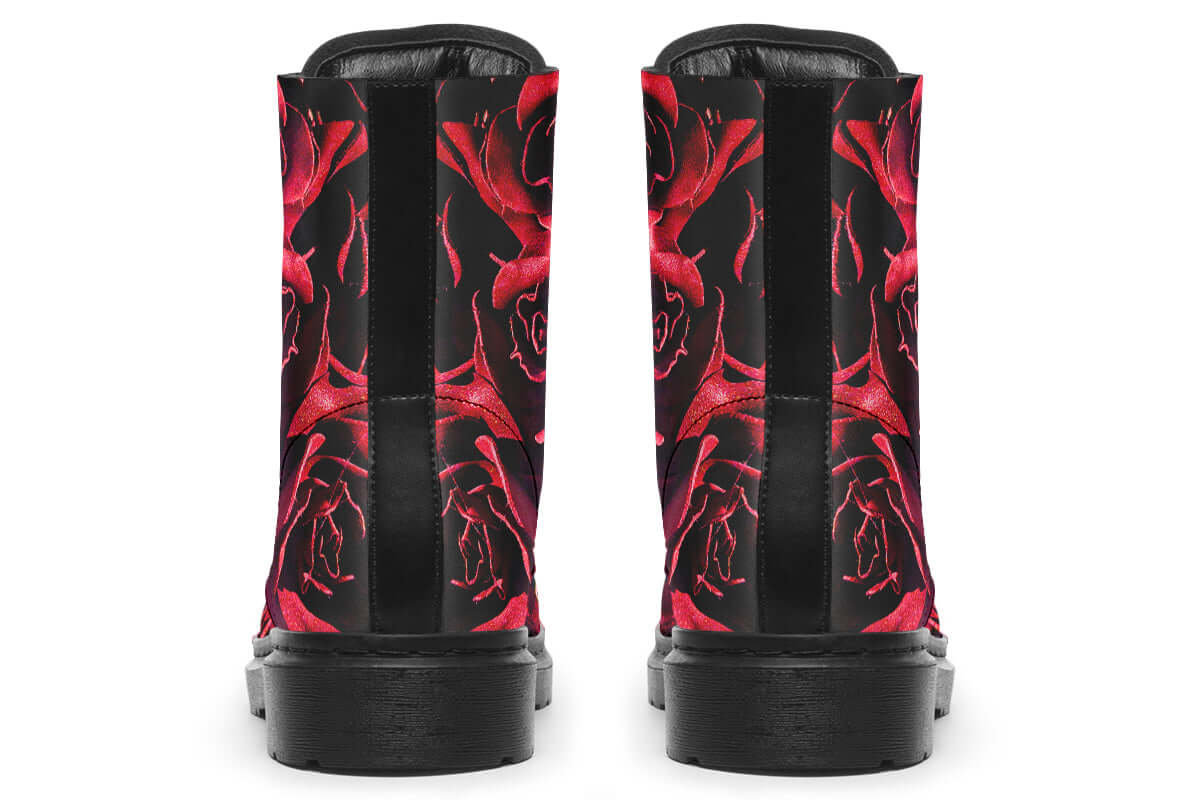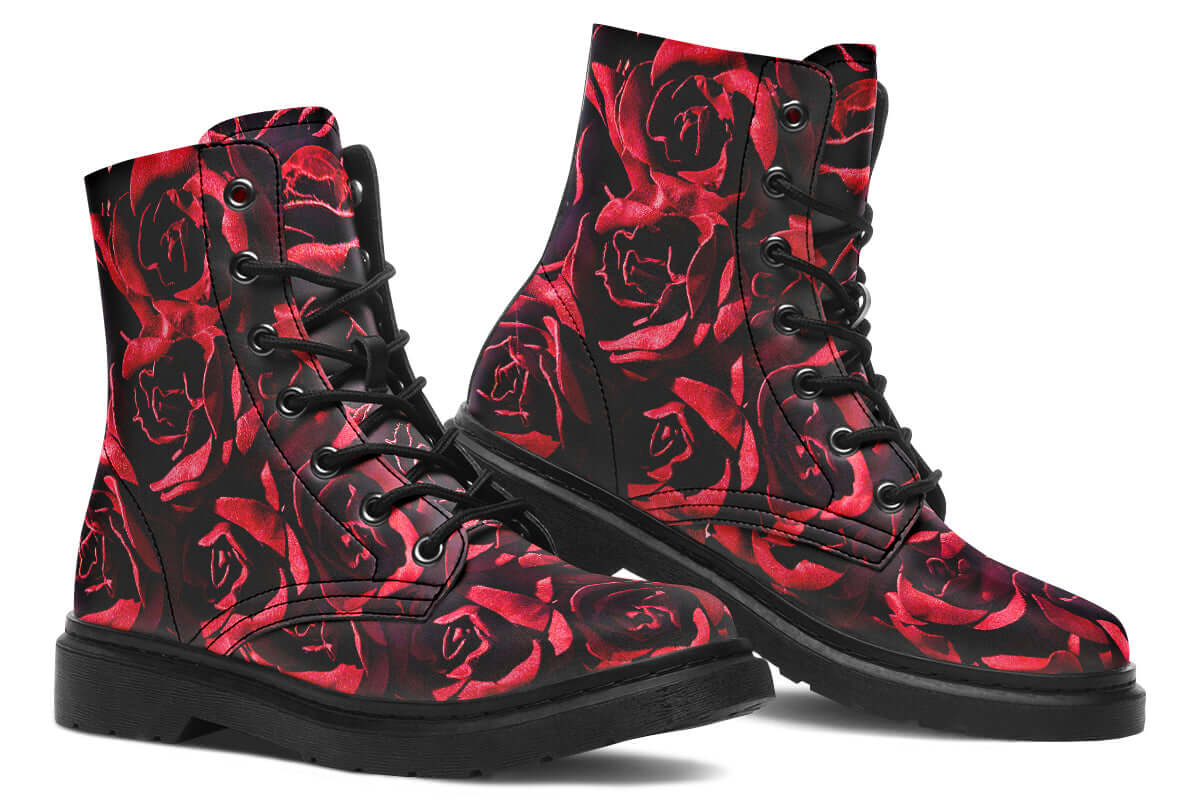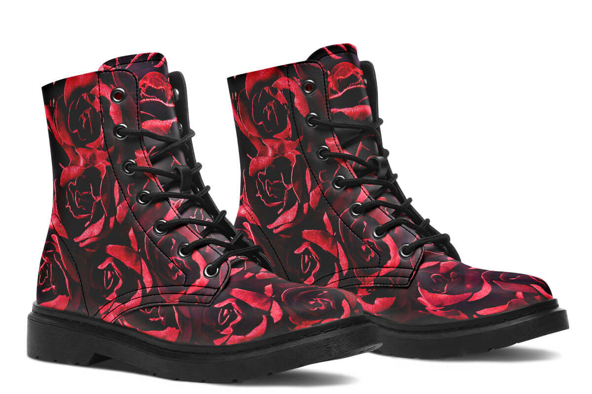 These Red Roses Vegan Boots are a bold floral tribute to the darker side of beauty. Covered in deep crimson rose prints set against black vegan leather, they channel fierce femininity and dramatic elegance in every step. Built for comfort, style, and everyday wear with serious attitude.