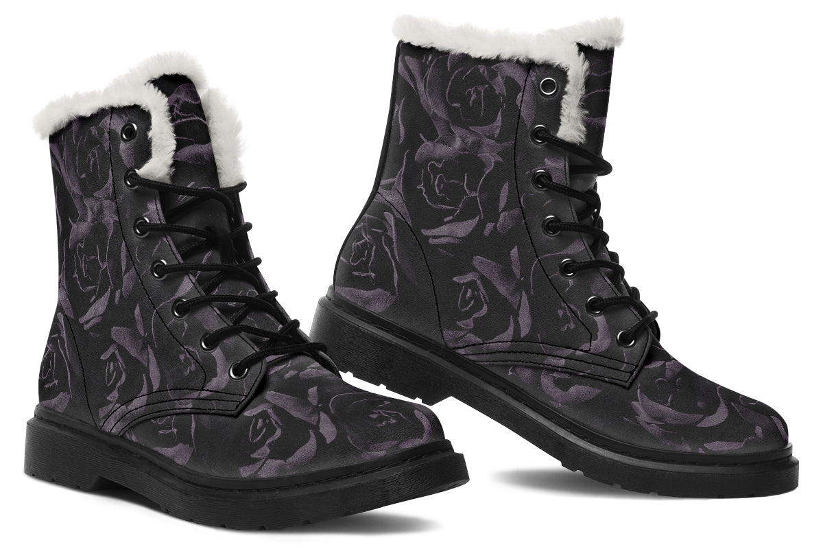 Stay warm in style with the ANTIBrand Blackest Roses Fleece Lined Boots. Featuring original artwork by Kate, these boots are finished with an all-over deep rose design in a moody black and grey palette. The cosy fleece lining keeps your feet warm, while the durable sole offers everyday support. Perfect for winter styling with an alternative twist.