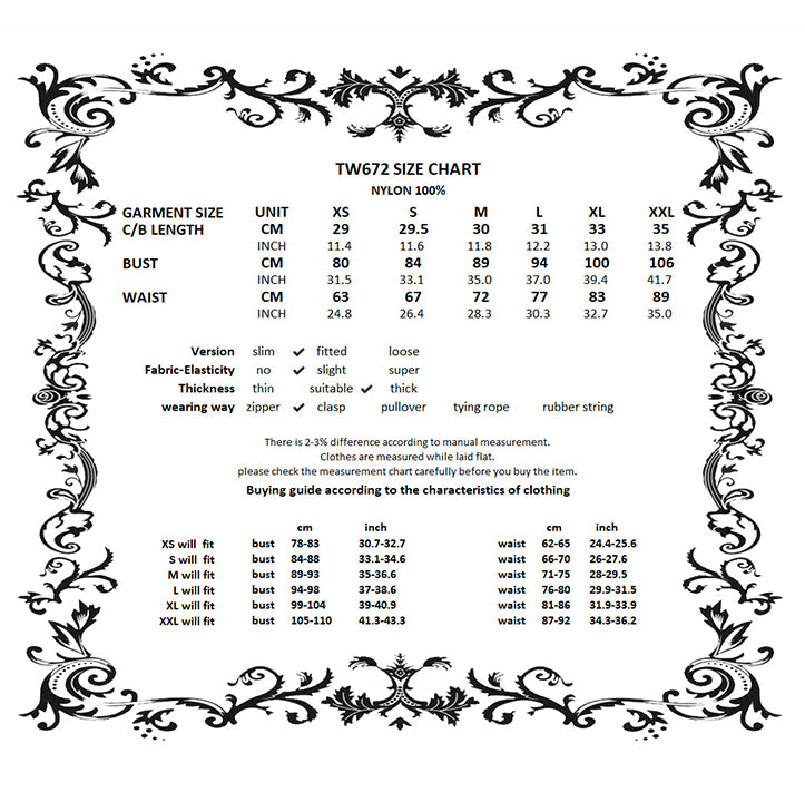 Please check the body size guide carefully before ordering, as sizing may vary slightly due to manual measurement.