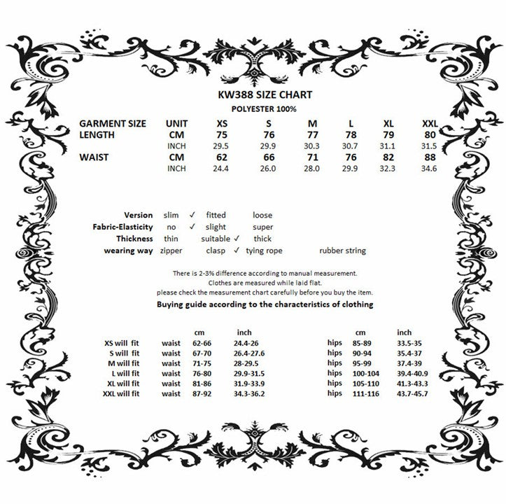 Size Guide: Please refer to the KW388 size chart for waist fit between 62–92 cm