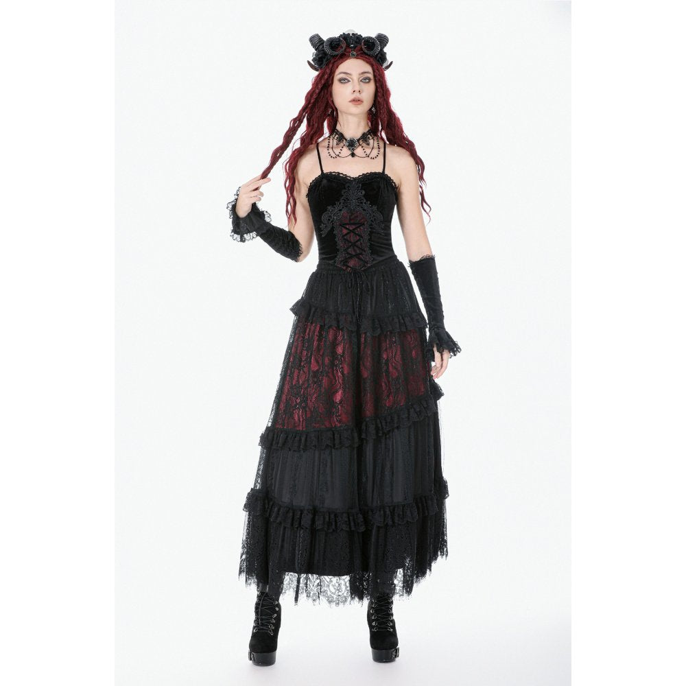 Dark in Love Gothic Black & Red Velvet Lace Corset