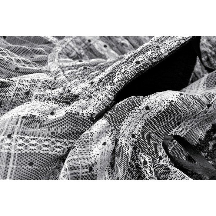 Unleash your punk enchantress with the Hexa Layered Tartan Skirt from Dark in Love. This striking piece combines black lace with monochrome tartan layers, creating a voluminous, ruffled silhouette that exudes both gothic elegance and rebellious flair.