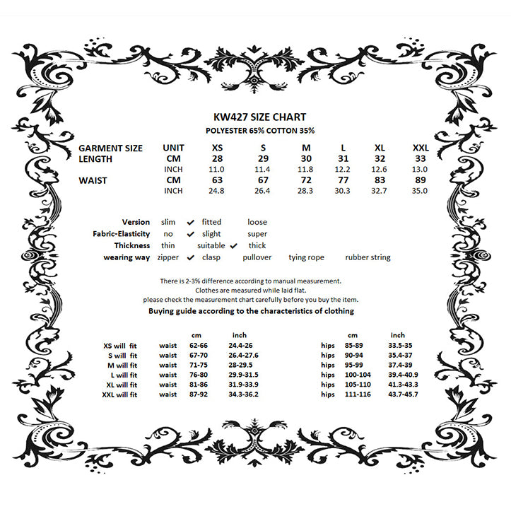 • Faux leather waistband with eyelet grommets and detachable chain