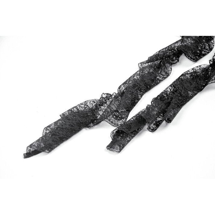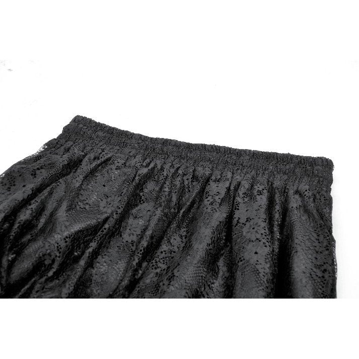 Exude gothic elegance with the Dark in Love Sabina Skirt – a high-low masterpiece crafted from sheer black lace. This flowing design cascades into a dramatic draped silhouette with a statement bustle effect at the back, pairing romance with rebellion. The layered floral lace and gathered detailing add texture and depth, while an elasticated waistband with drawstring ensures an adjustable fit for comfort and style. Perfect for layering over bloomers, shorts, or mini skirts, this skirt transforms any outfit into a hauntingly beautiful look.