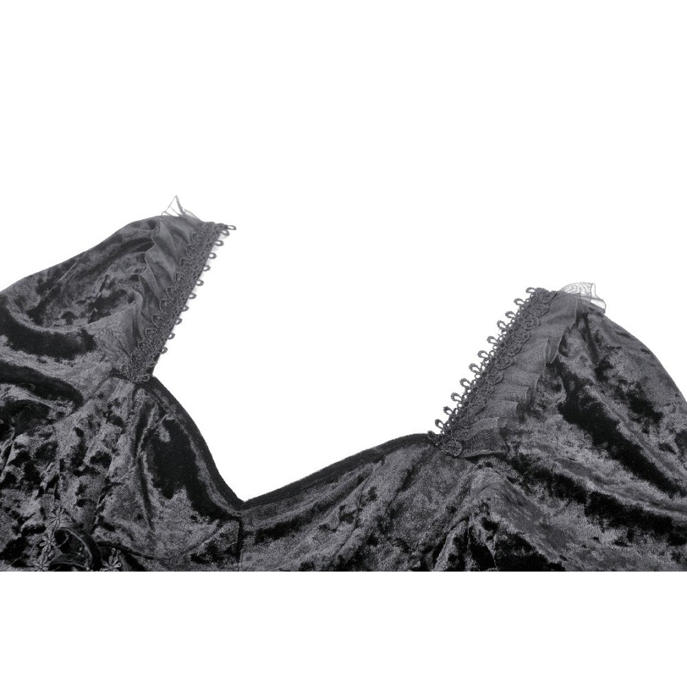 Slip into dark romance with the Dark in Love Seraphina Ruched Embroidered Lace Goth Cami Top – Wine Red. This stunning cami features a richly textured deep wine red satin base, overlaid with intricate black floral embroidery for an elegantly sinister look. The plunging V-neck is trimmed with delicate lace and finished with a sweet lace ruffle hem. Adjustable spaghetti straps and a fitted bodice offer a flattering silhouette, making it a perfect layering piece or a standout on its own. Ideal for goth soirées, vampy date nights, or alternative festivals.