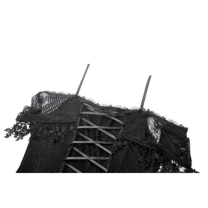 Step into a fairytale of darkness with the Soraya Gothic Lace High-Low Dress from Dark in Love. This enchanting off-shoulder design features a romantic high-low hemline layered in intricate lace, accented with delicate fringing across the neckline and sleeves. The structured bodice offers a flattering fit, while the flared multi-layered skirt creates dramatic movement perfect for moonlit walks or gothic events.