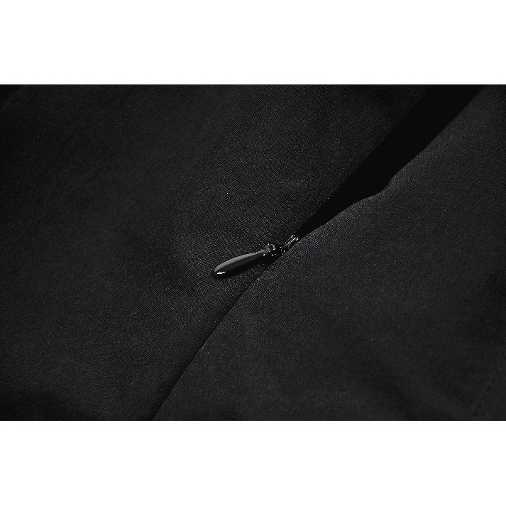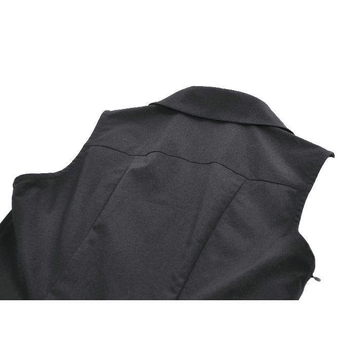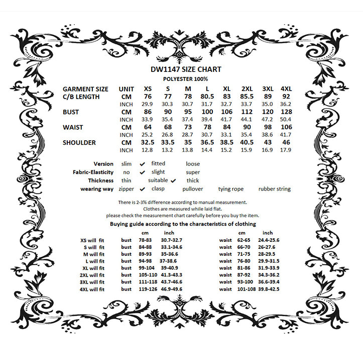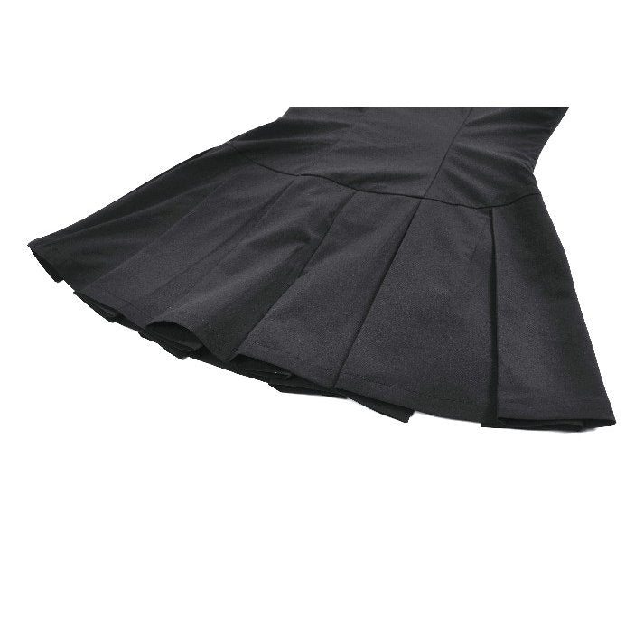 This bewitching sleeveless dress blends a flattering A-line silhouette with elegant corset-style lacing and a pointed collar for that perfect Gothic authority. Silver-toned grommets and a front zip closure evoke industrial charm, while the pleated mini skirt brings movement and drama. The fitted bodice cinches at the waist and flatters the bust, making this a killer day-to-night piece for the bold and the beautifully damned.