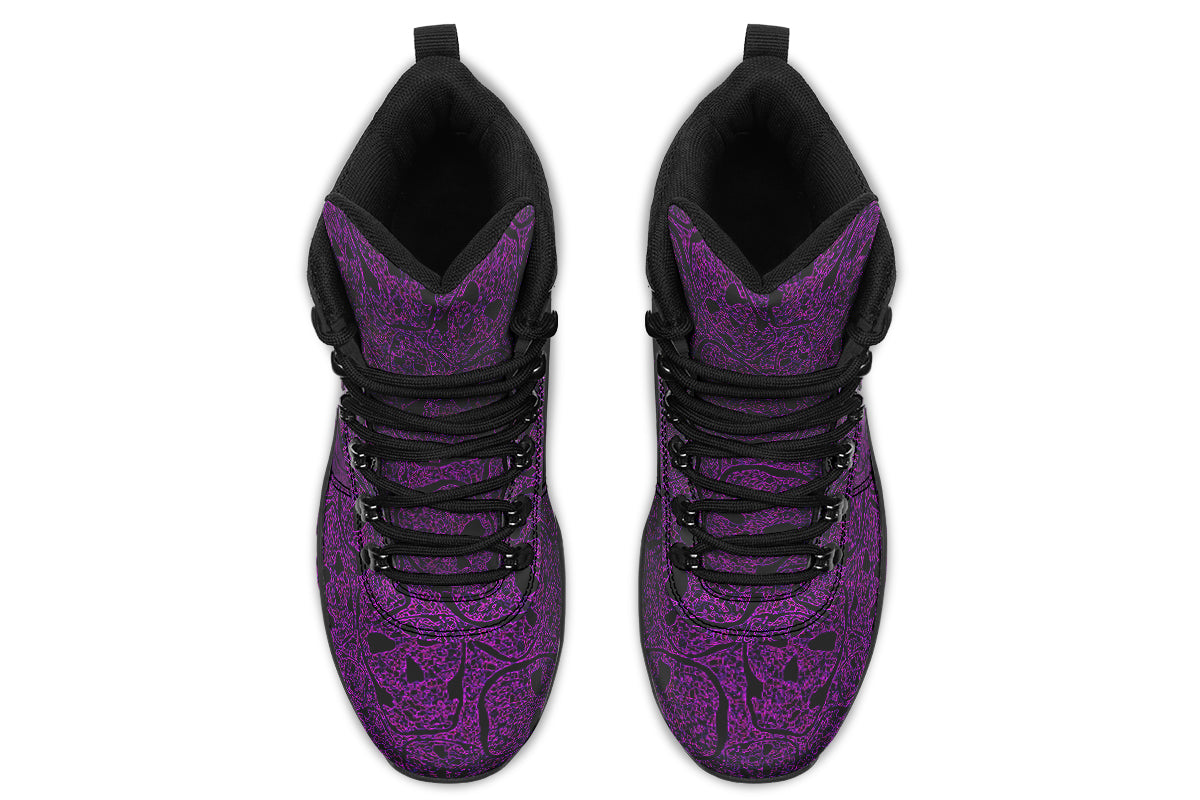 Step into eternity with the ANTIBrand Digital Immortality Walking Boots. These custom printed boots feature an electrifying purple skull digital pattern, combining striking style with rugged practicality. Perfect for outdoor adventures or urban explorations.