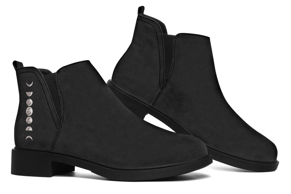 Celebrate lunar magic with the ANTIBrand Moon Phases Chelsea Boots. Featuring detailed moon phase artwork, these boots bring celestial vibes to your everyday goth fashion.
