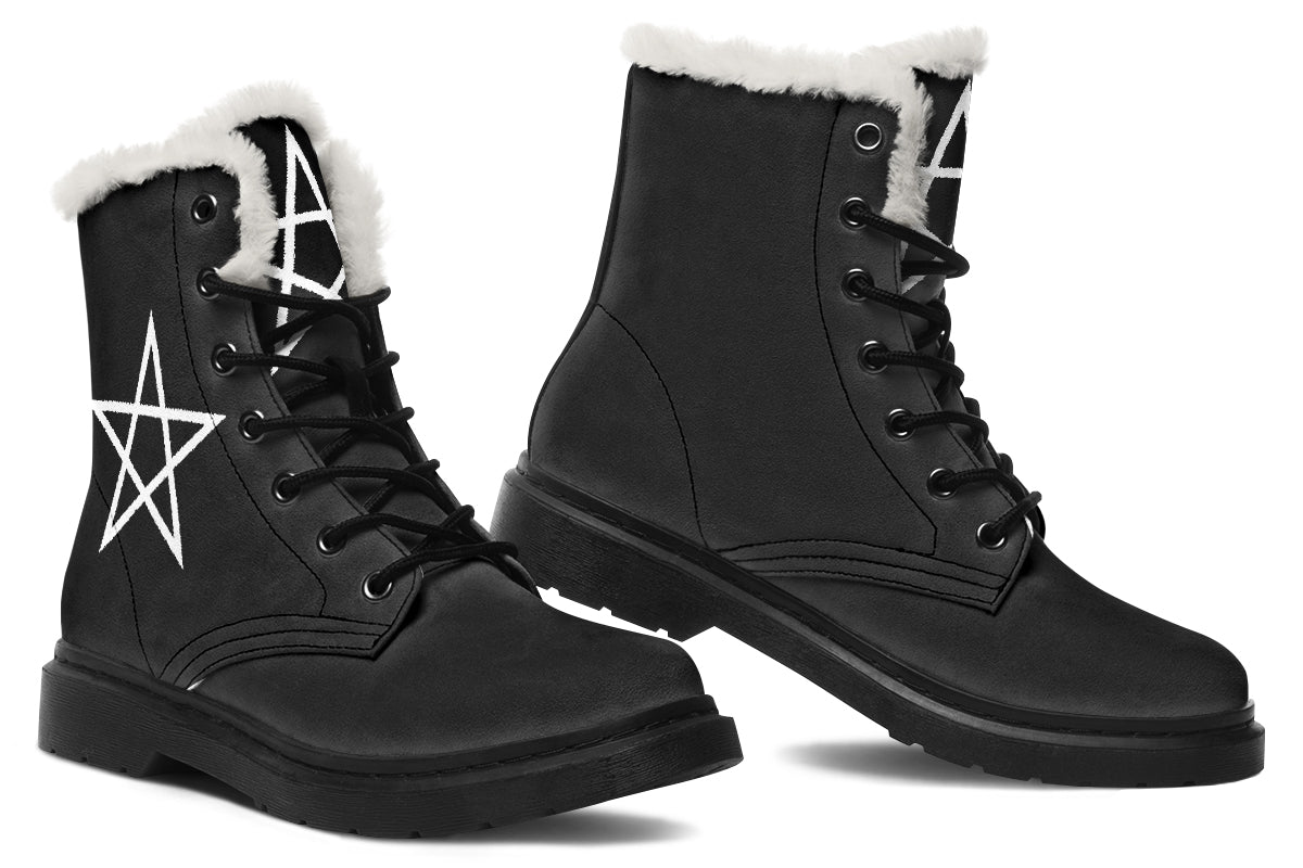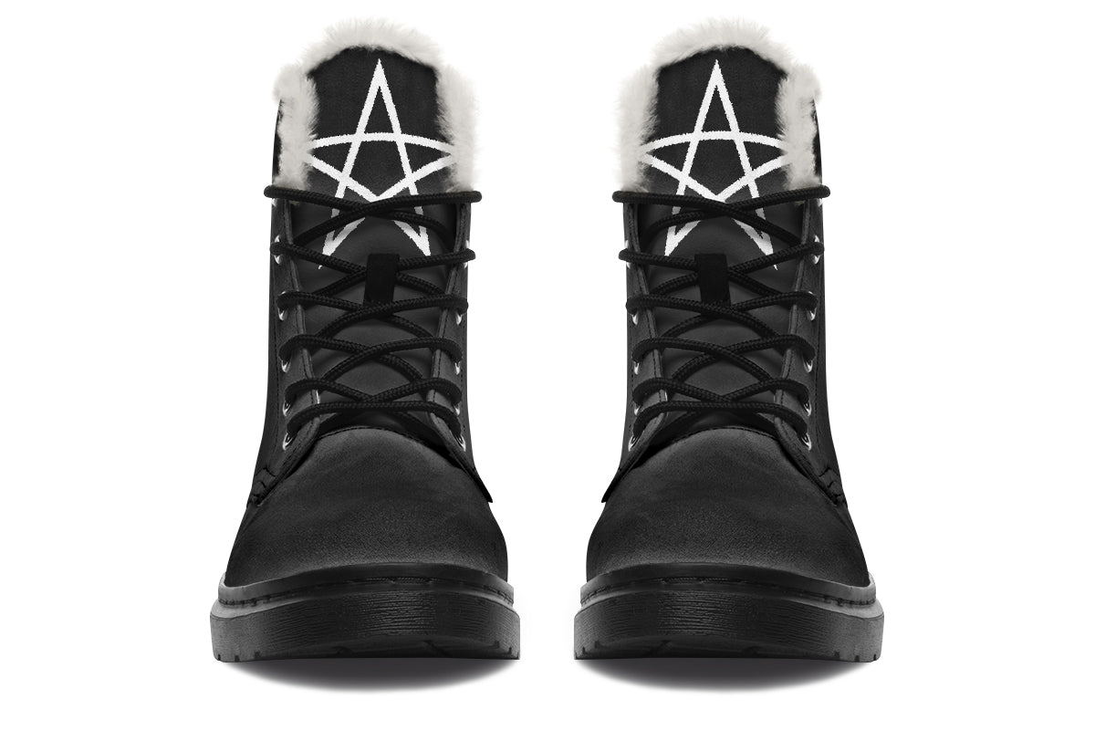 Step into protective power with the ANTIBrand Pentagram Protection Fleece Lined Boots. These boots showcase the iconic white pentagram on a sleek black base, symbolising strength and spiritual safeguarding. Inside, the fleece lining offers exceptional comfort and warmth, perfect for winter wear with a mystical twist.