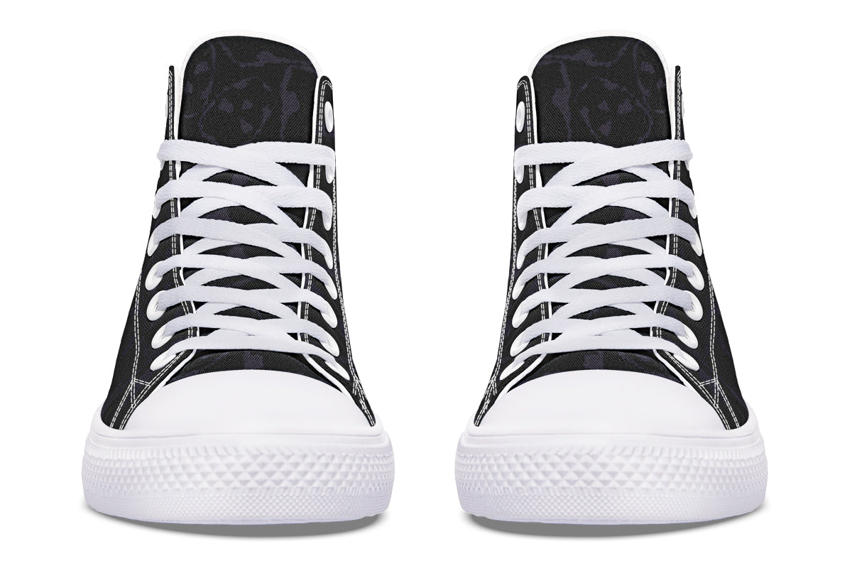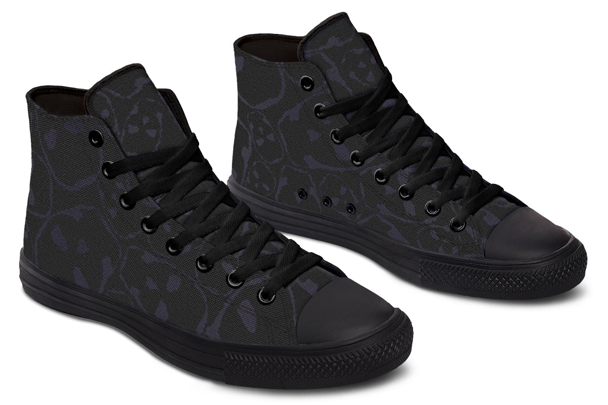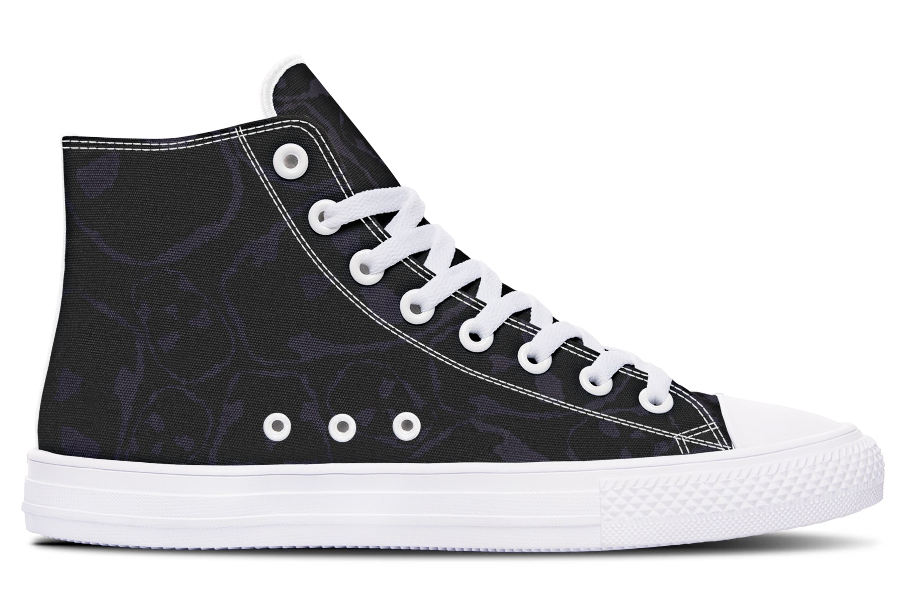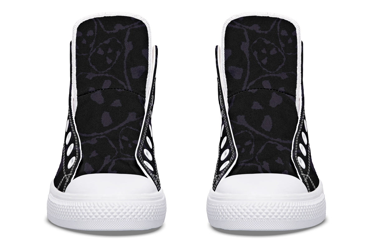 Embrace your dark side with the ANTIBrand Tumbling Skulls of Darkness High Tops – Black. Featuring a subtle tonal black skull pattern across a sturdy canvas upper, these trainers channel gothic rebellion with everyday wearability. Finished with black laces, black sole, and reinforced stitching for long-lasting style.
