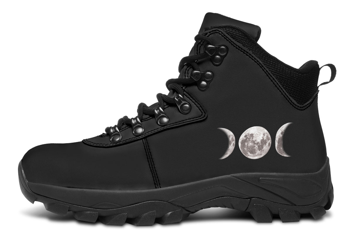 Channel the power of the moon with the ANTIBrand Triple Goddess Walking Boots. Adorned with the sacred lunar symbol, these boots fuse gothic mysticism with modern comfort.