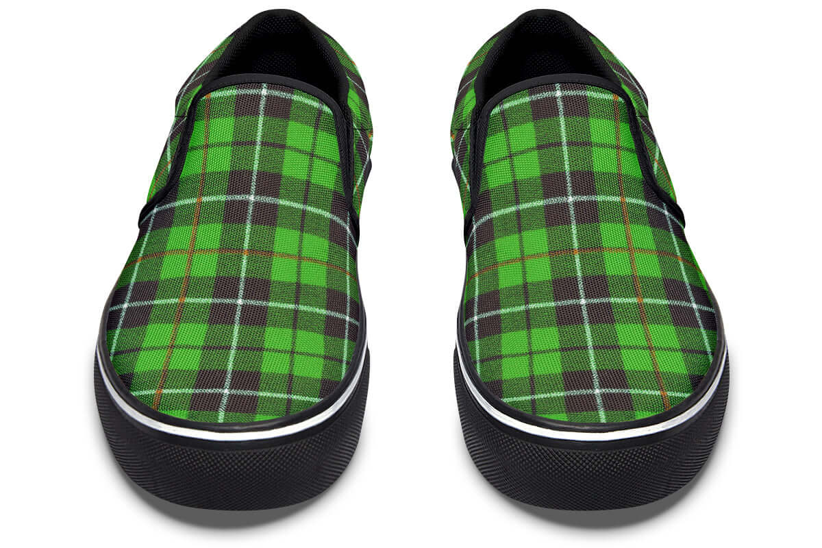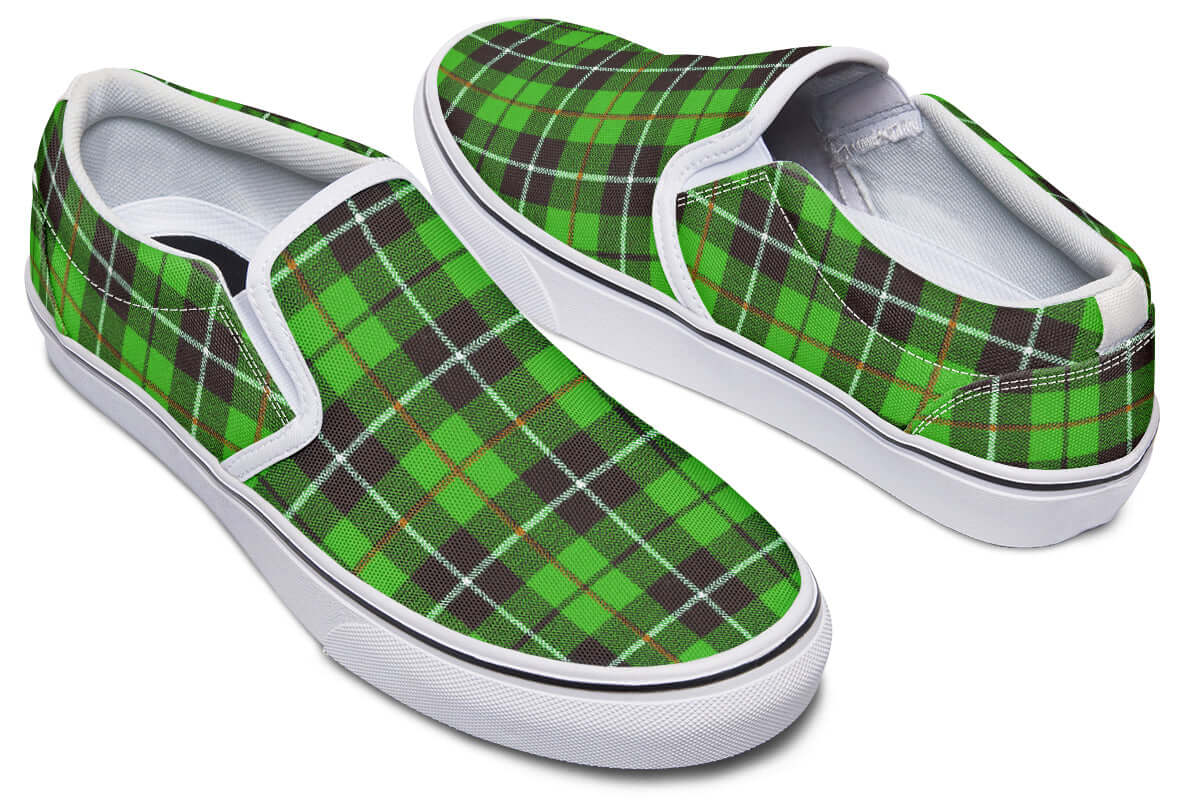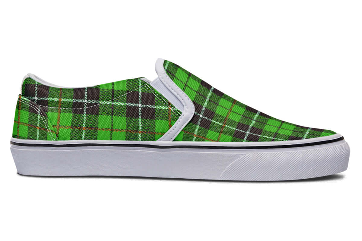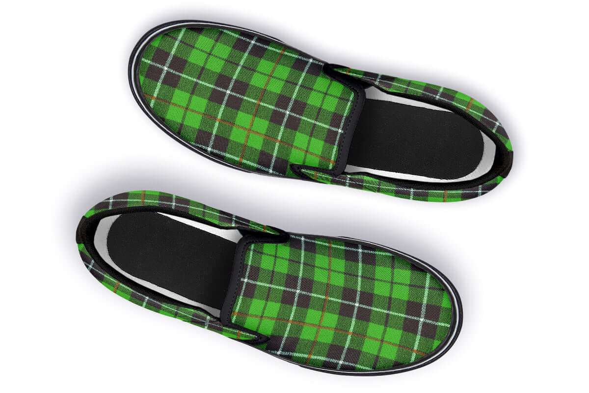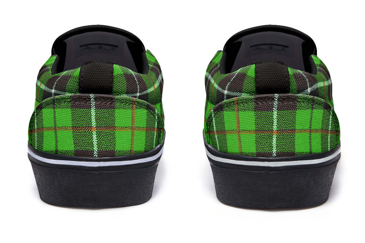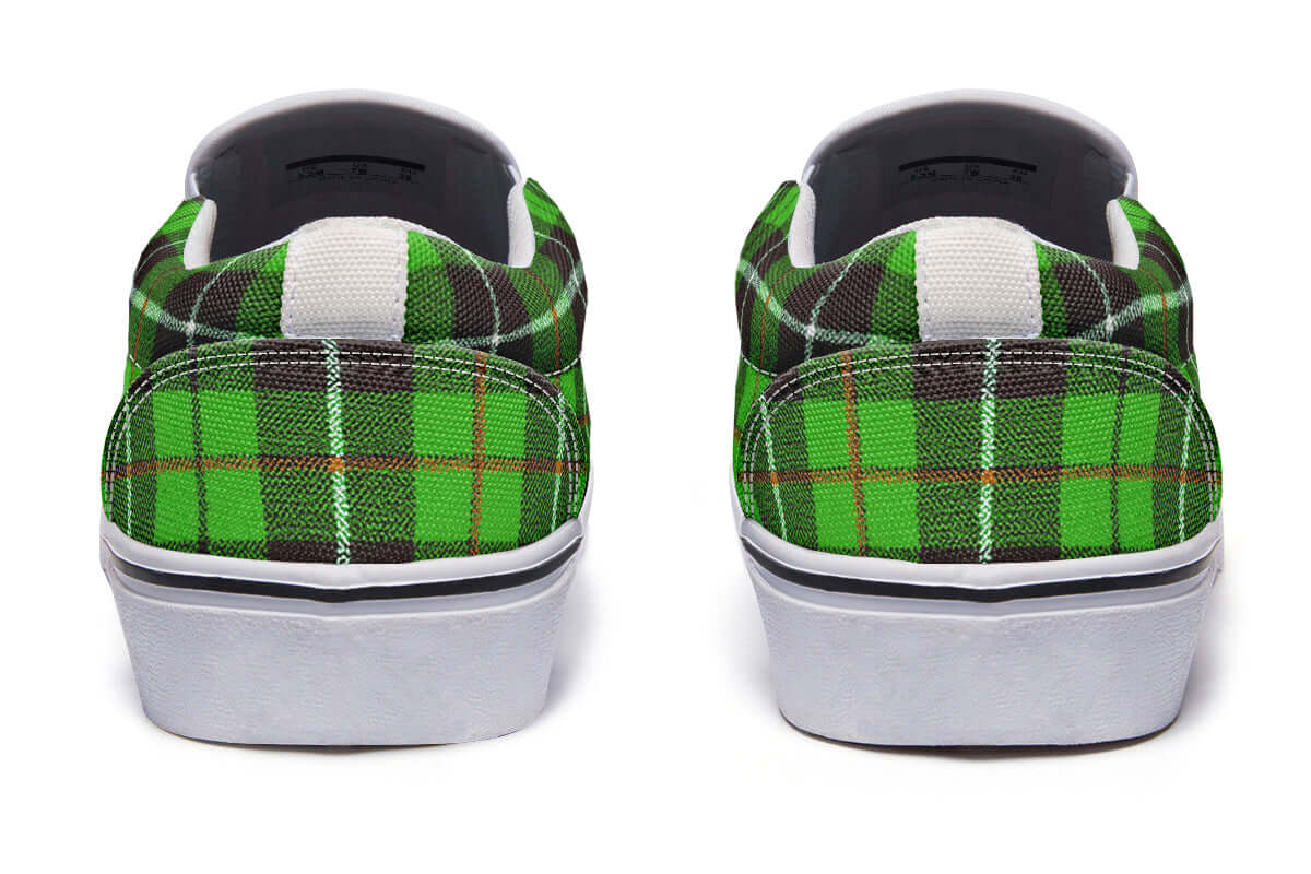 Turn heads and clash patterns with purpose in these Green Tartan Canvas Slip-On Trainers from ANTIBrand. Featuring a fierce bright green and black tartan check, these punk-approved kicks make a loud statement with zero effort.