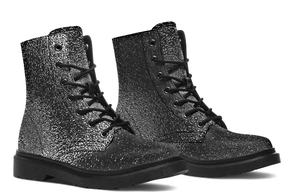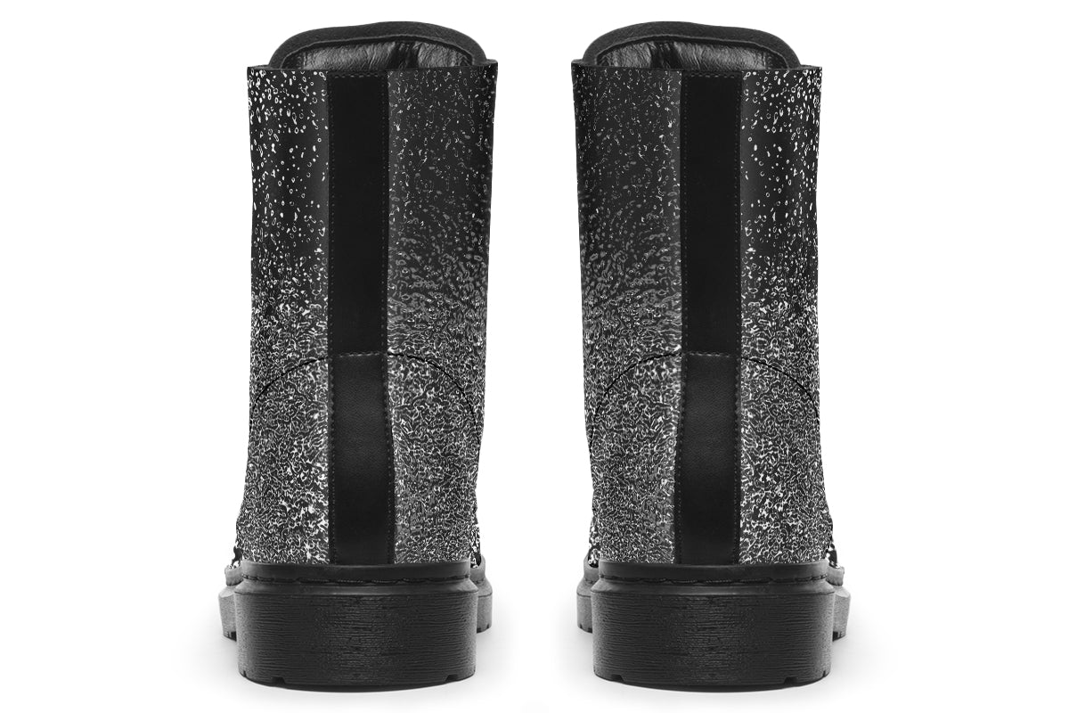 These made-to-order boots feature a unique mottled chrome-effect print that seems to gleam like a midnight storm. Metallic look but never flashy, tough but never bulky – they’re the perfect statement boots for when your outfit needs just the right amount of volume.