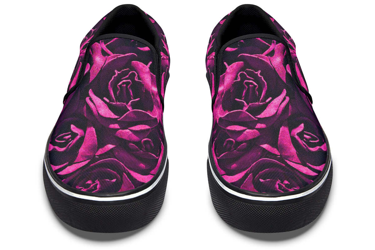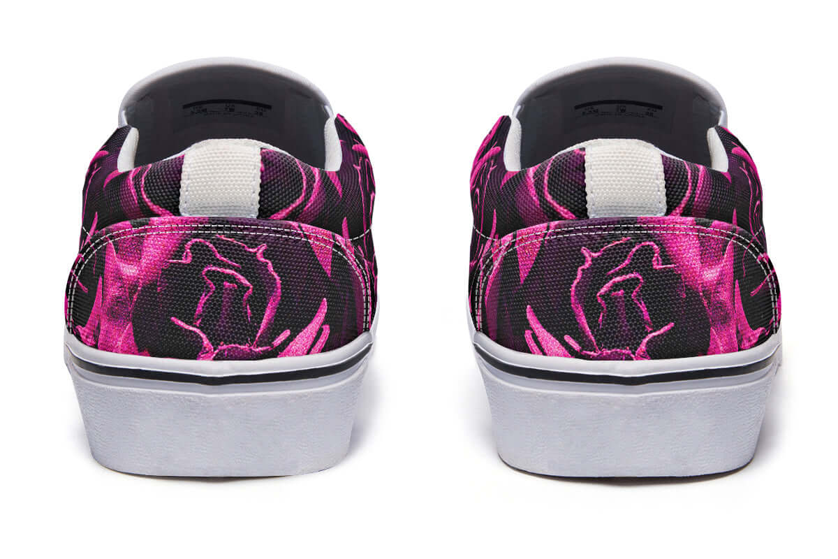 Make every step a statement with these Magenta Roses Canvas Slip-On Trainers by ANTIBrand. Featuring a striking black and magenta floral pattern, these shoes bring an unmistakably gothic twist to a classic slip-on silhouette.