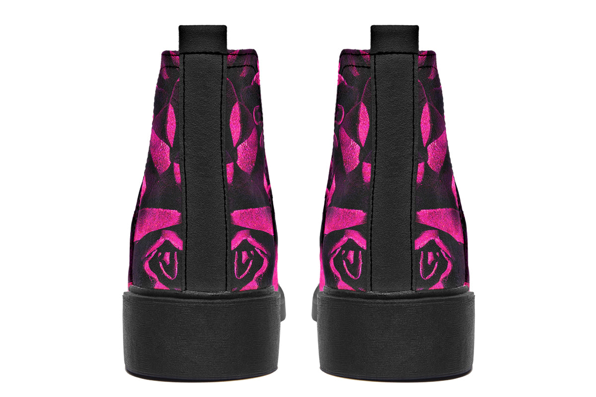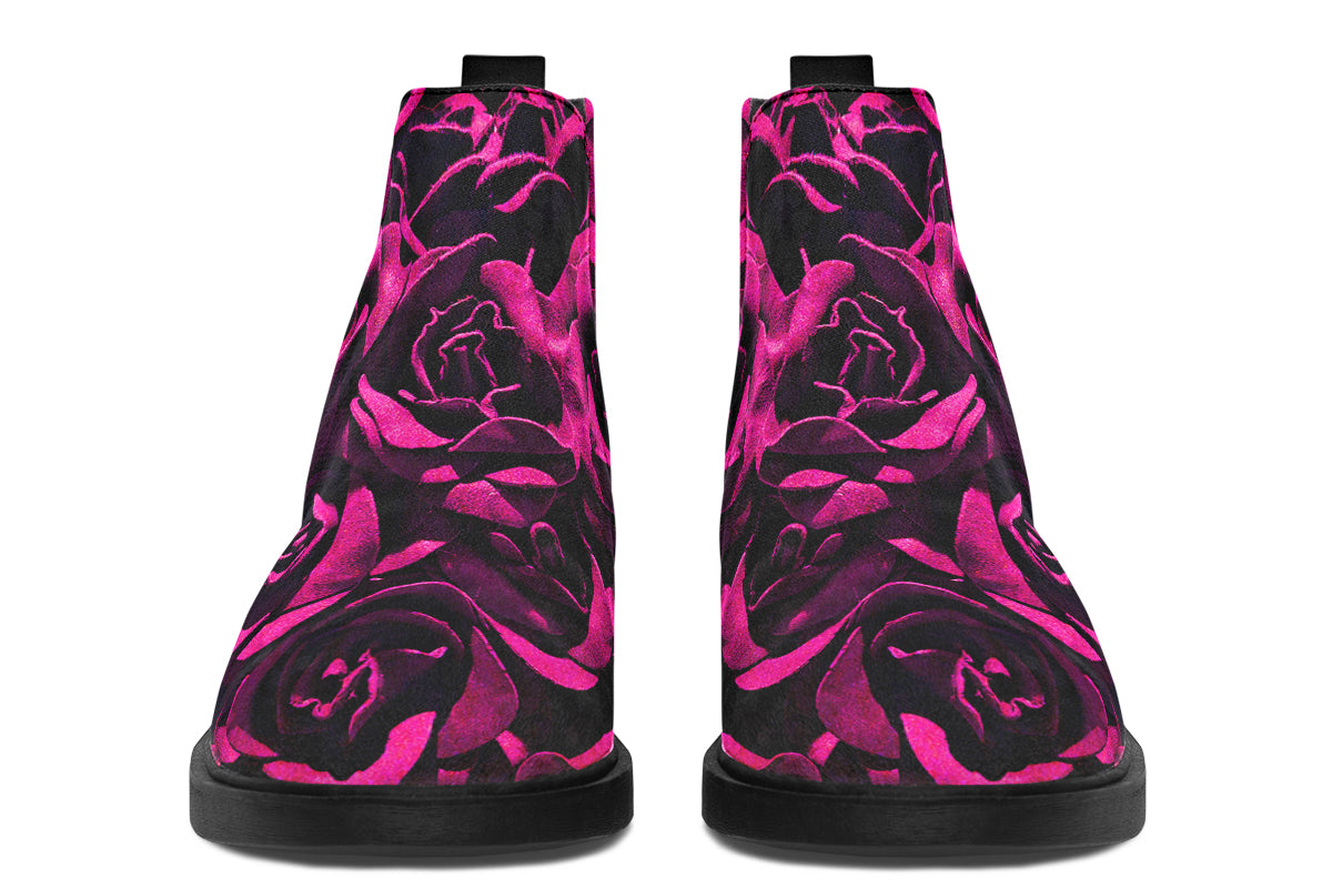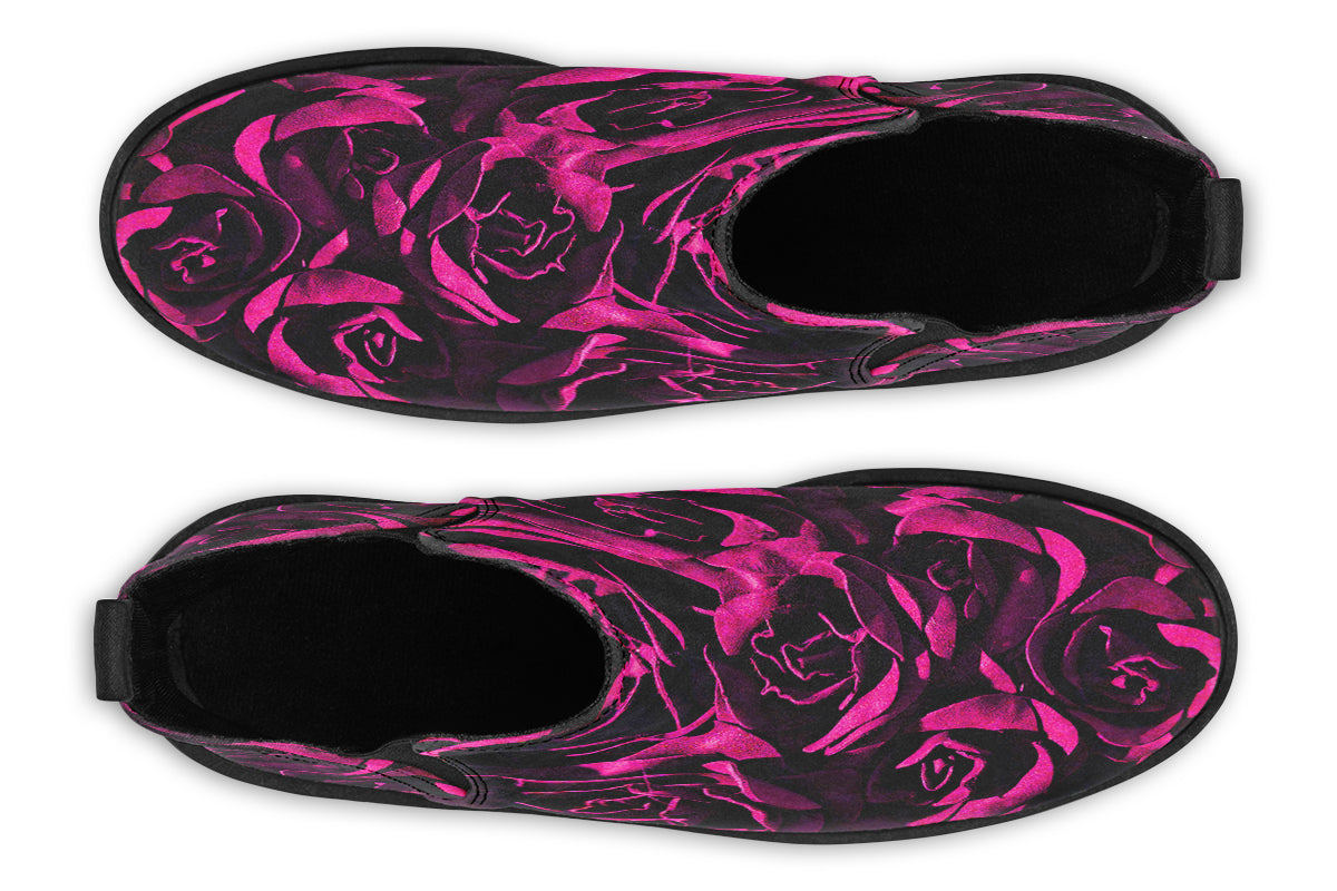 Embrace bold florals with the ANTIBrand Magenta Roses Chelsea Boots, featuring original artwork by Kate. These striking boots blend alt fashion with everyday wearability, making them the perfect choice for adding a pop of colour to your wardrobe. The vibrant rose print is set against a dark base, while the classic Chelsea boot silhouette offers comfort and effortless styling. Crafted with durable materials and a supportive sole, they’re designed to last.