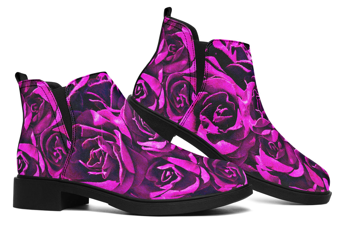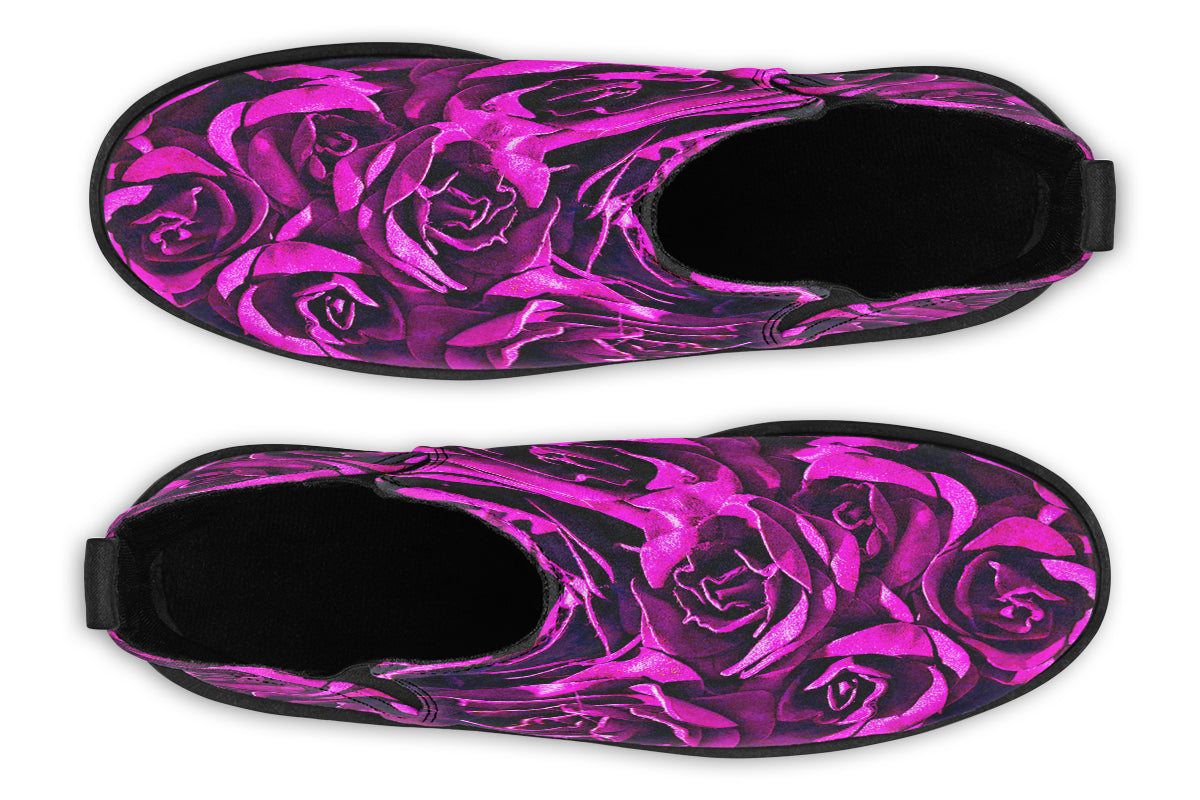Bring colour to your dark wardrobe with the ANTIBrand Pink Roses Chelsea Boots, featuring original artwork by Kate. The vibrant rose pattern adds striking contrast to the sleek Chelsea shape, making them the perfect blend of alt fashion and wearable style. With a supportive sole and quality craftsmanship, these boots are built for comfort and statement looks.