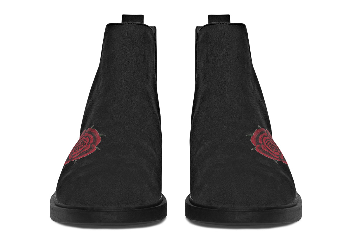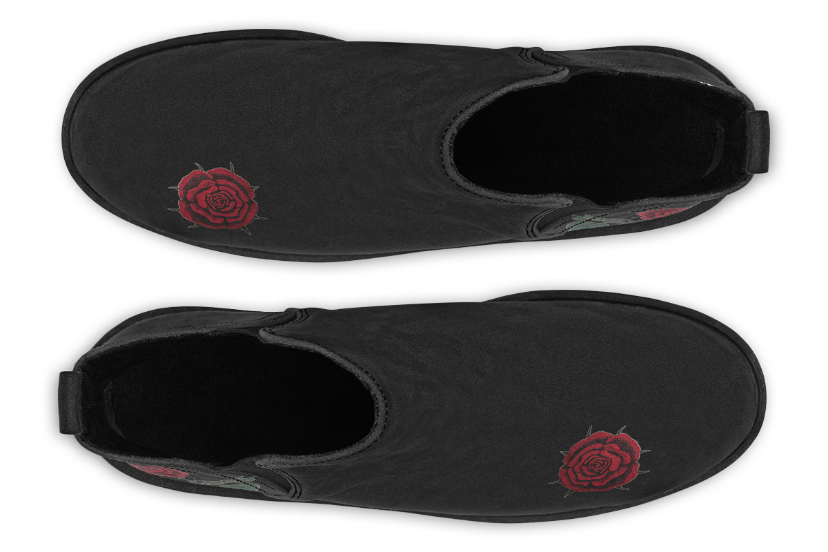 Add artistic detail to your footwear with the ANTIBrand Rose Painting Chelsea Boots, featuring original artwork by Kate. The minimalist black base is decorated with vivid rose artwork, creating a unique and creative take on classic alt style. With a supportive sole and timeless Chelsea cut, these boots are equal parts wearable and statement-making.