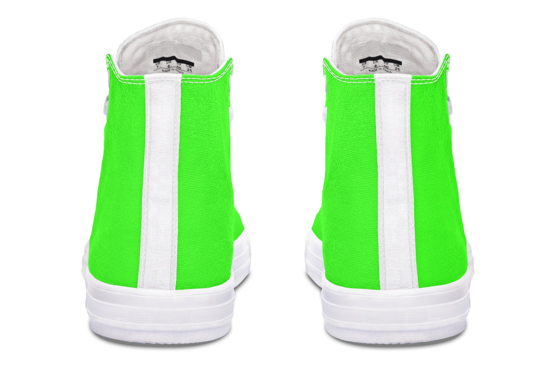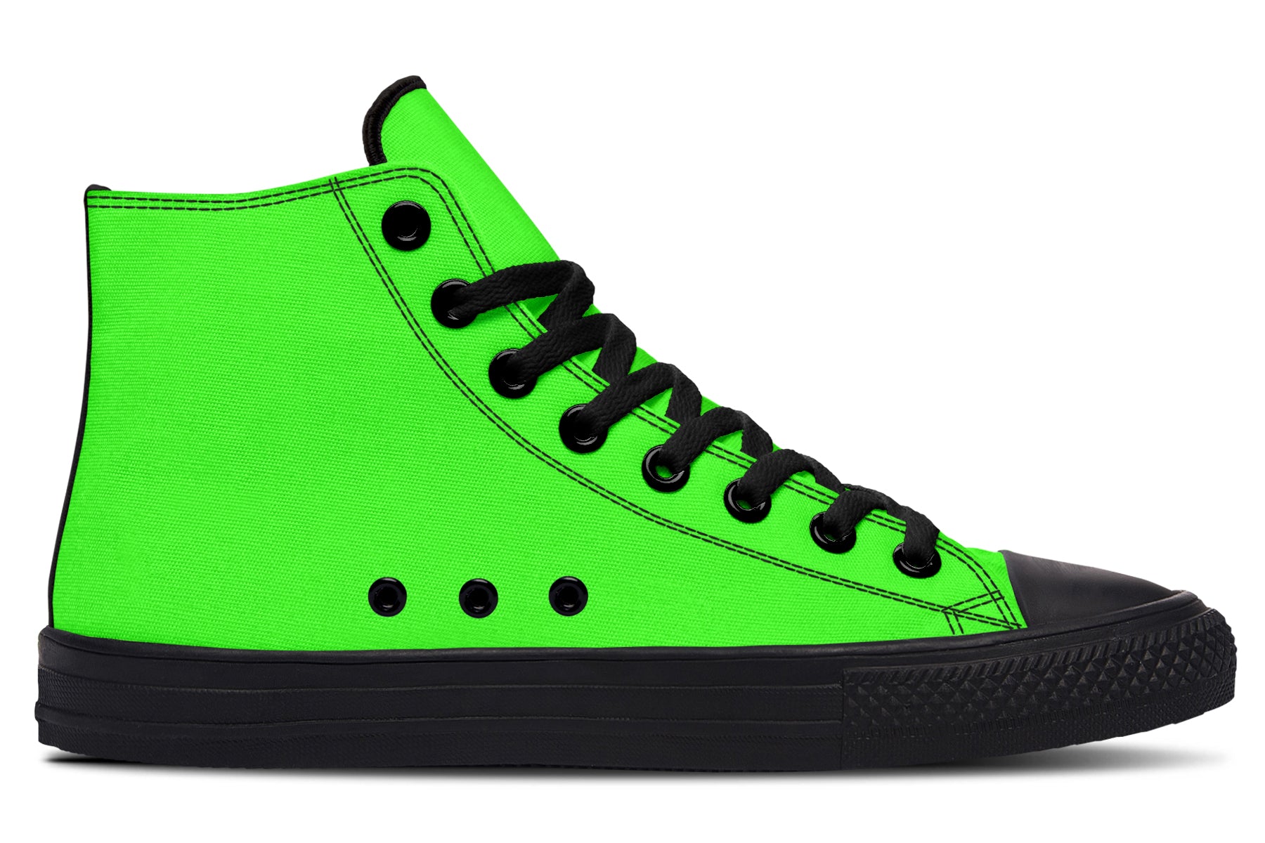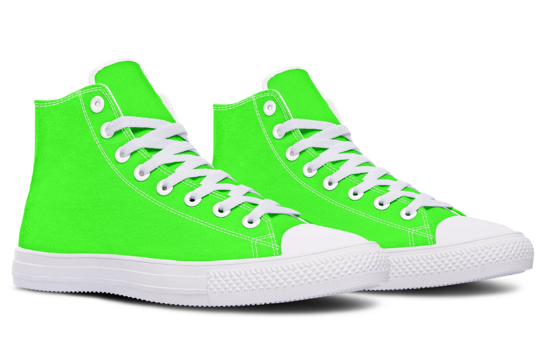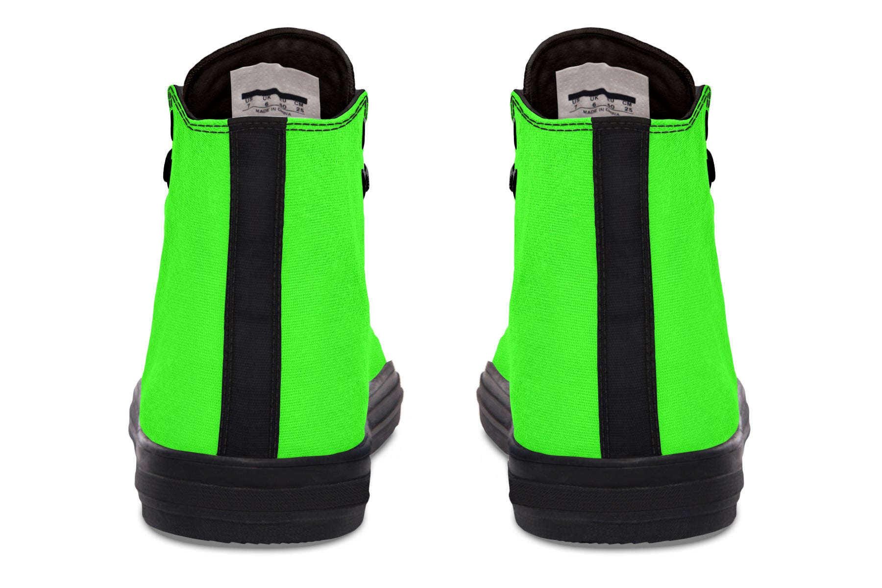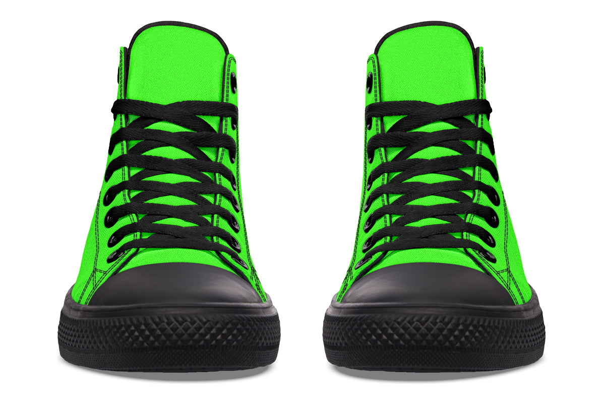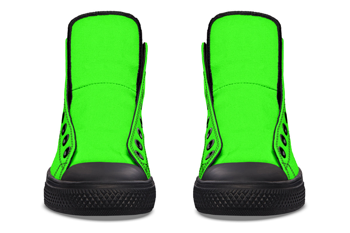 Turn heads with unapologetic brightness in the ANTIBrand Neon Green Drama Queen High Tops. Designed for those who live loud, this electric green canvas brings a rebellious edge to any look. Contrasted with a solid black sole and laces, these trainers balance statement style with everyday wearability. A fearless choice for alternative fashion lovers.