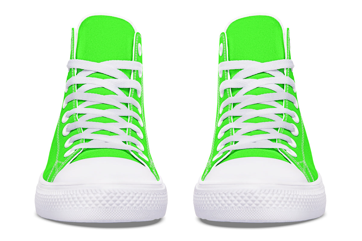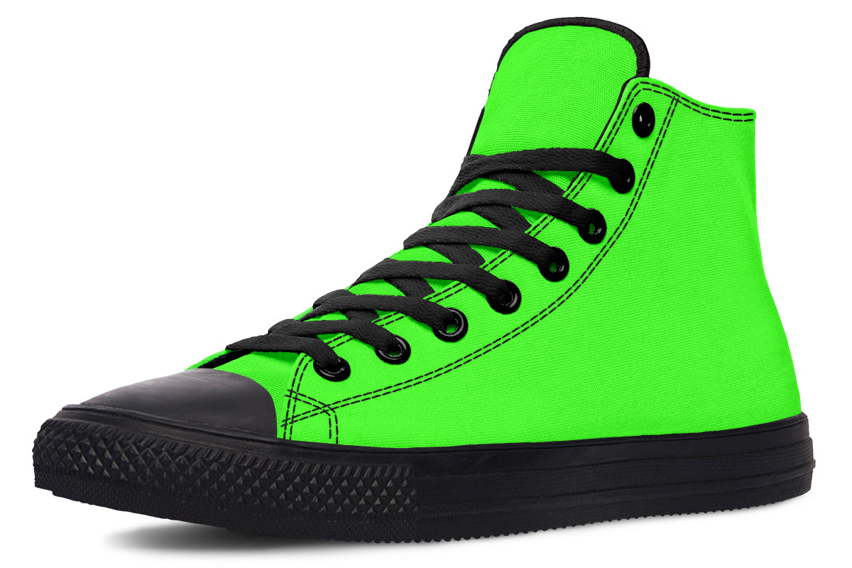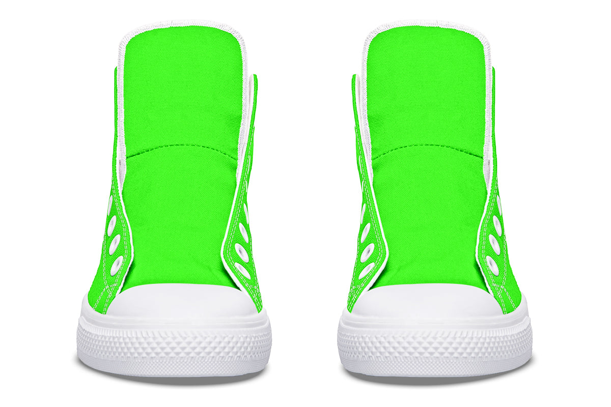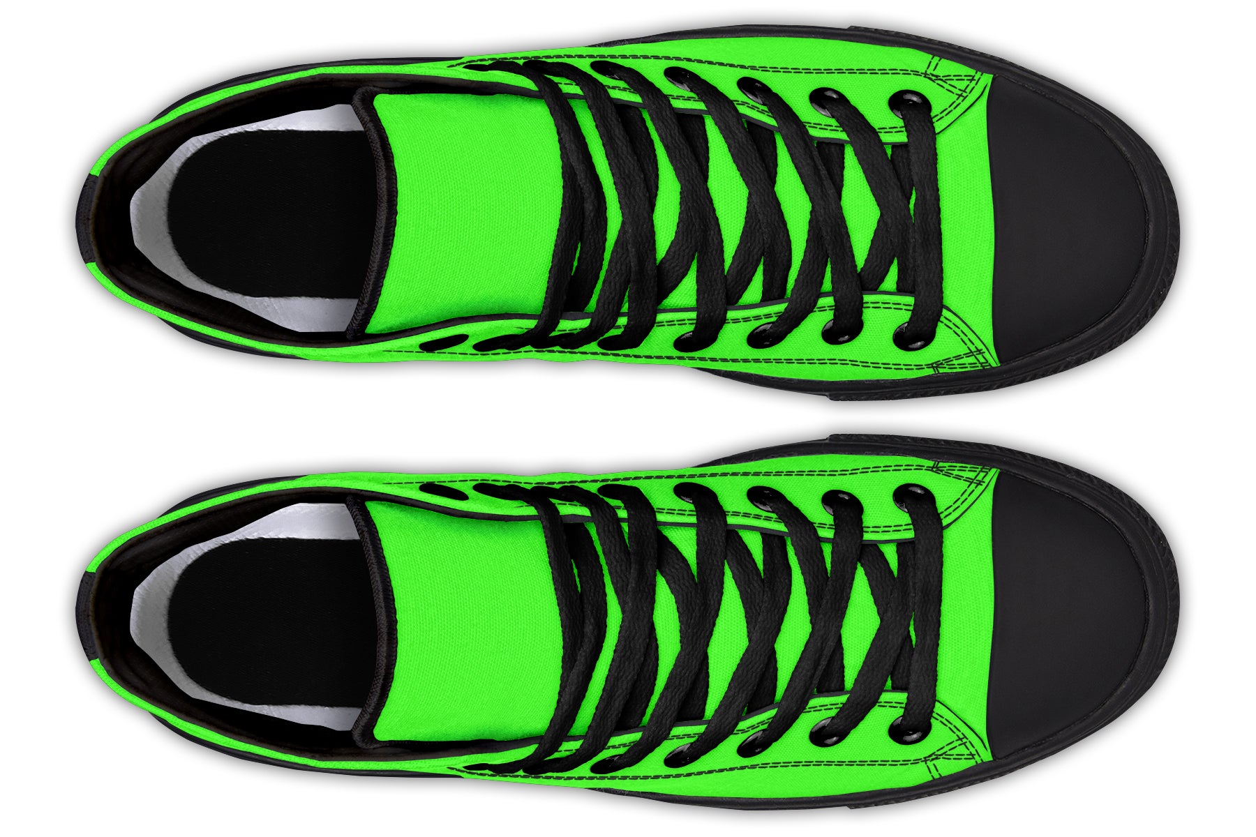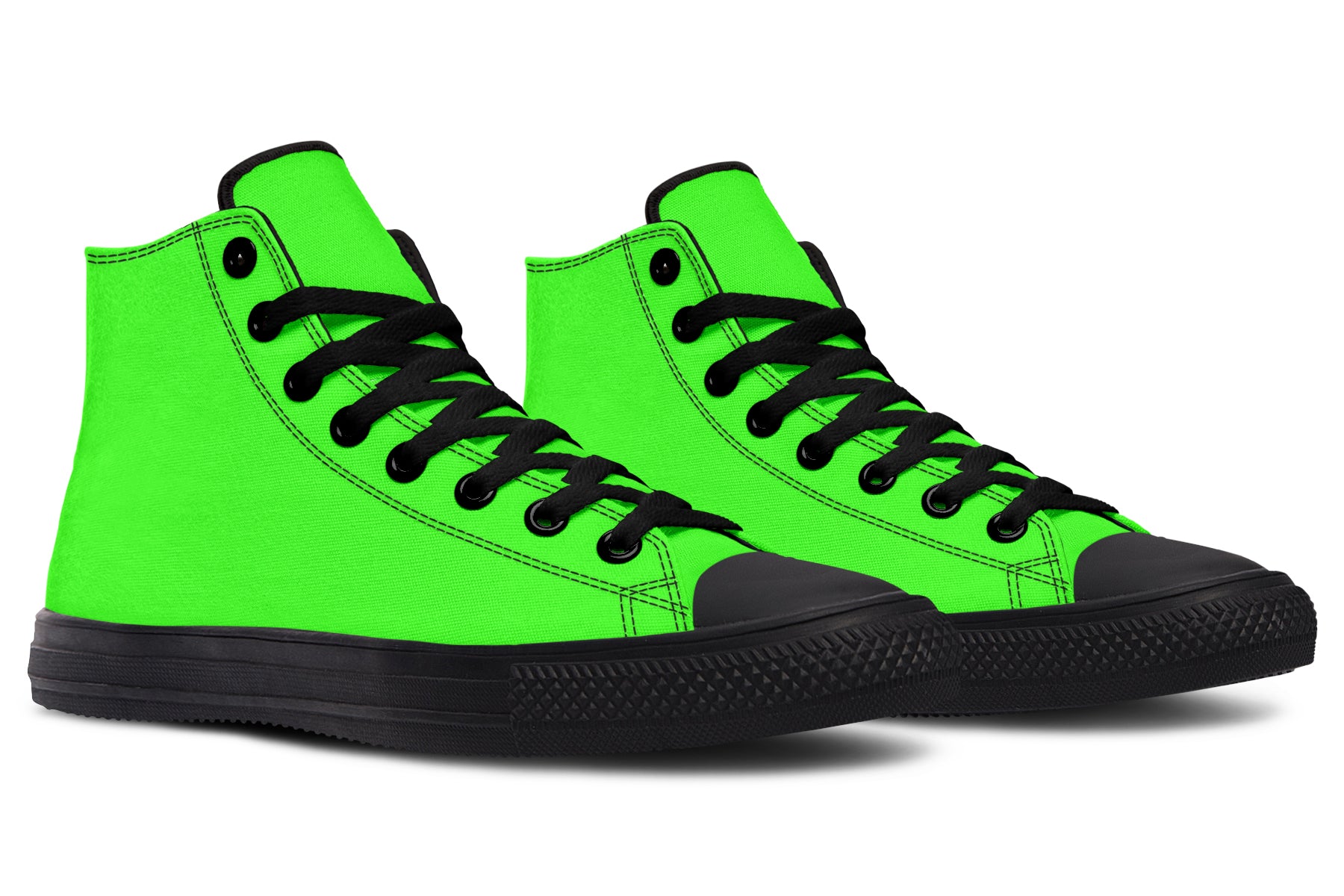 Turn heads with unapologetic brightness in the ANTIBrand Neon Green Drama Queen High Tops. Designed for those who live loud, this electric green canvas brings a rebellious edge to any look. Contrasted with a solid black sole and laces, these trainers balance statement style with everyday wearability. A fearless choice for alternative fashion lovers.