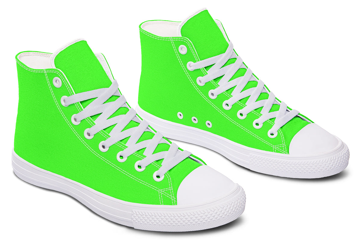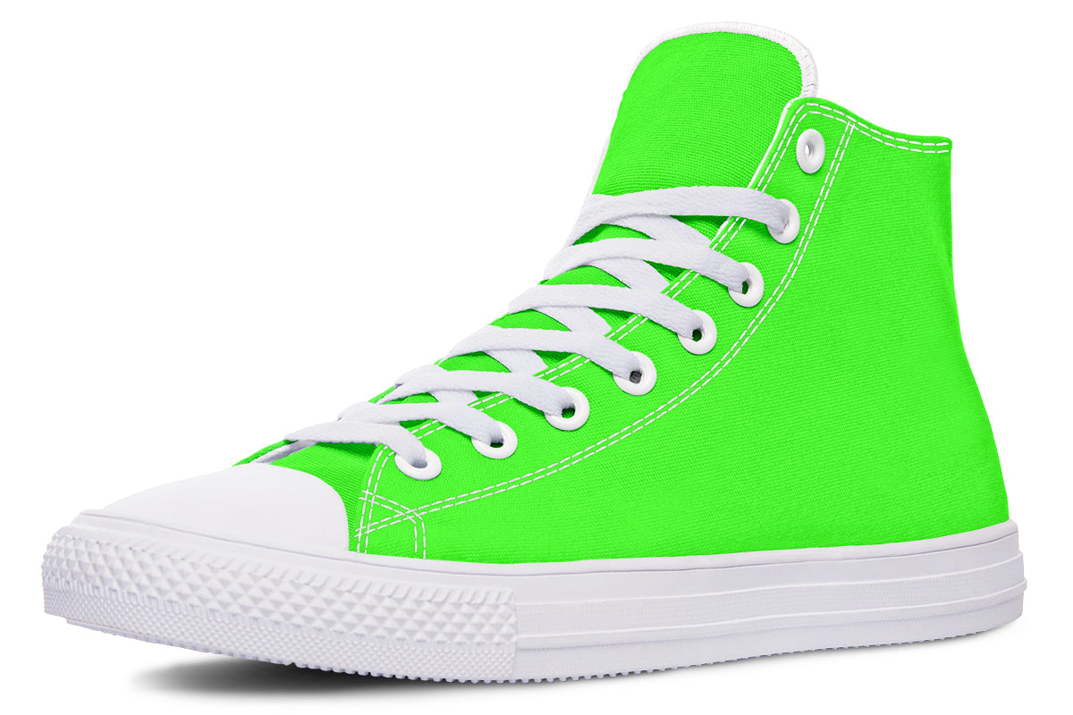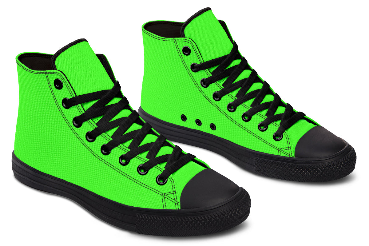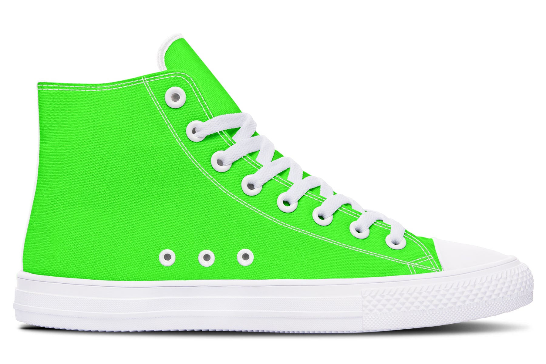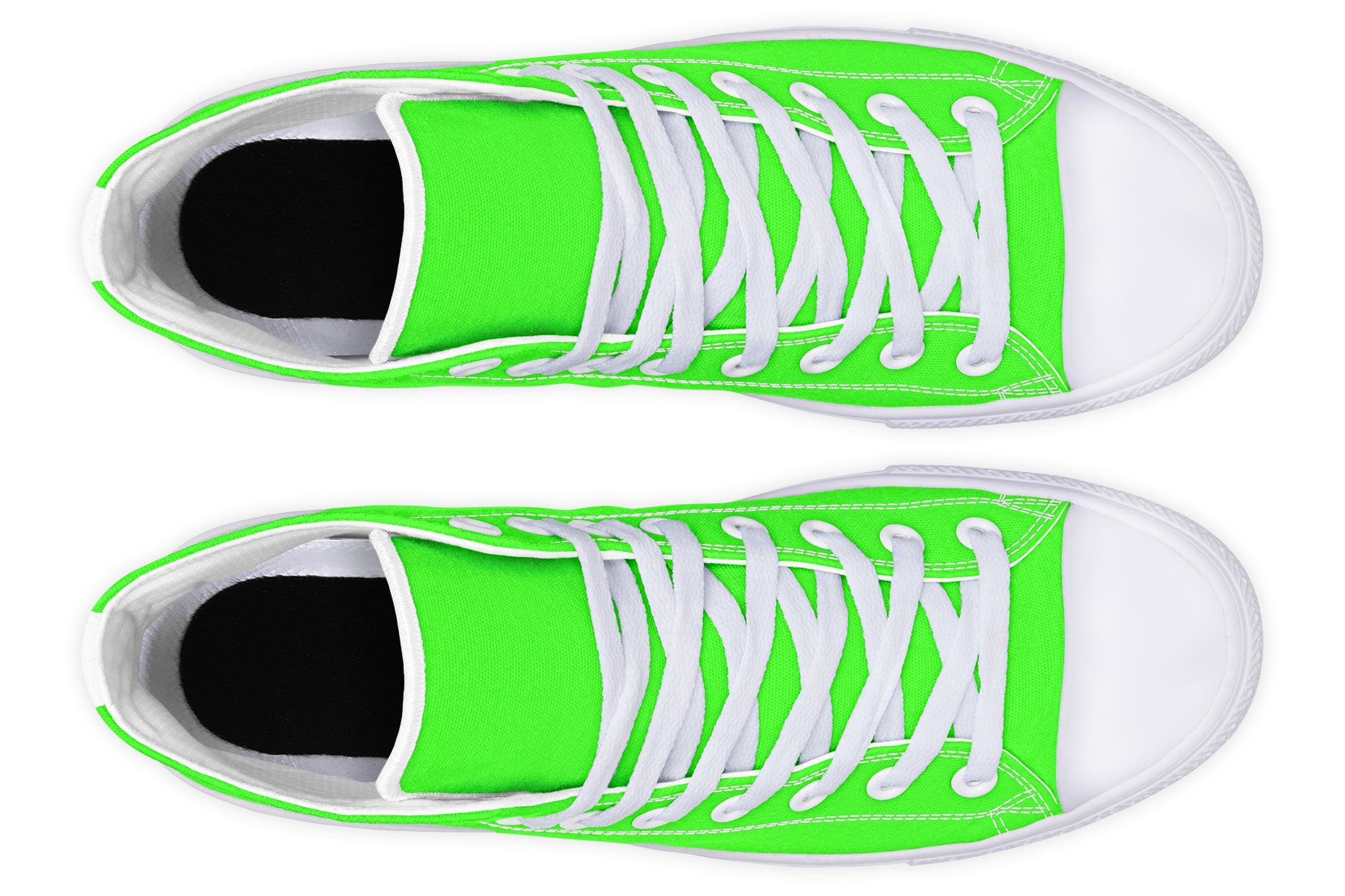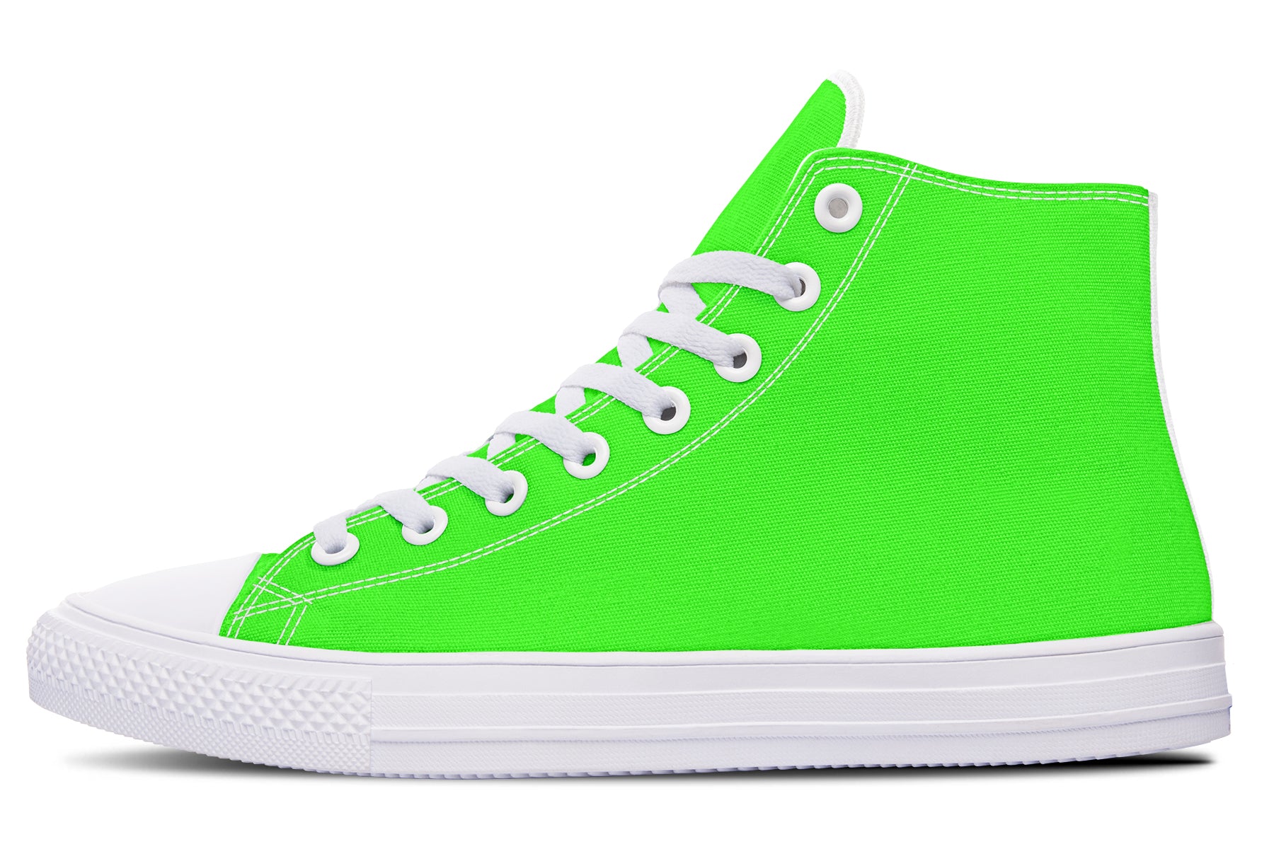 Turn heads with unapologetic brightness in the ANTIBrand Neon Green Drama Queen High Tops. Designed for those who live loud, this electric green canvas brings a rebellious edge to any look. Contrasted with a solid black sole and laces, these trainers balance statement style with everyday wearability. A fearless choice for alternative fashion lovers.