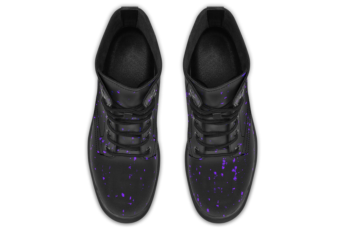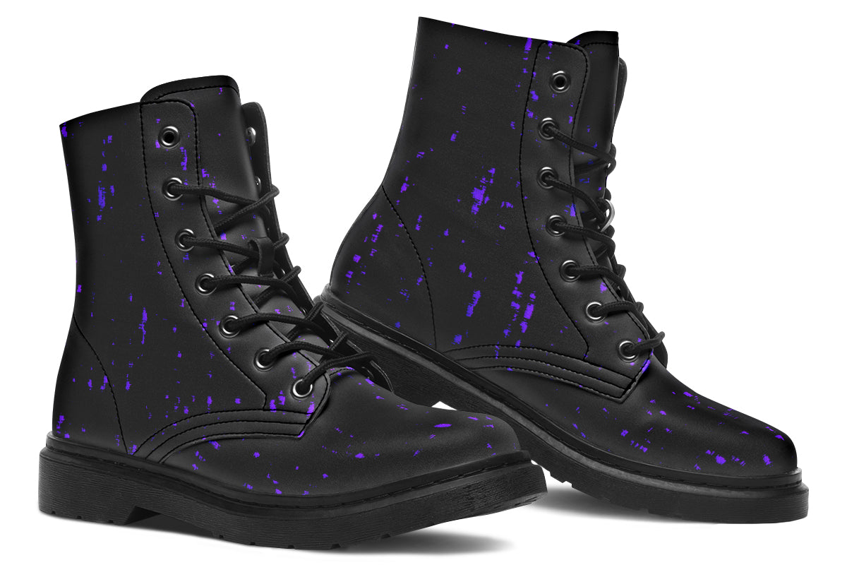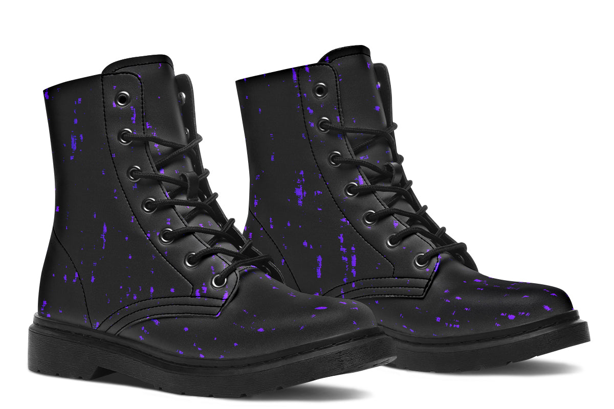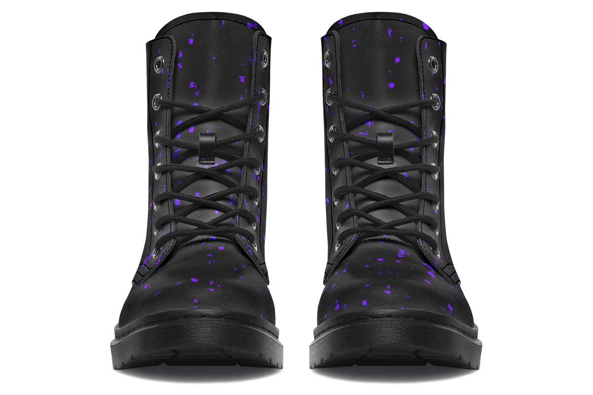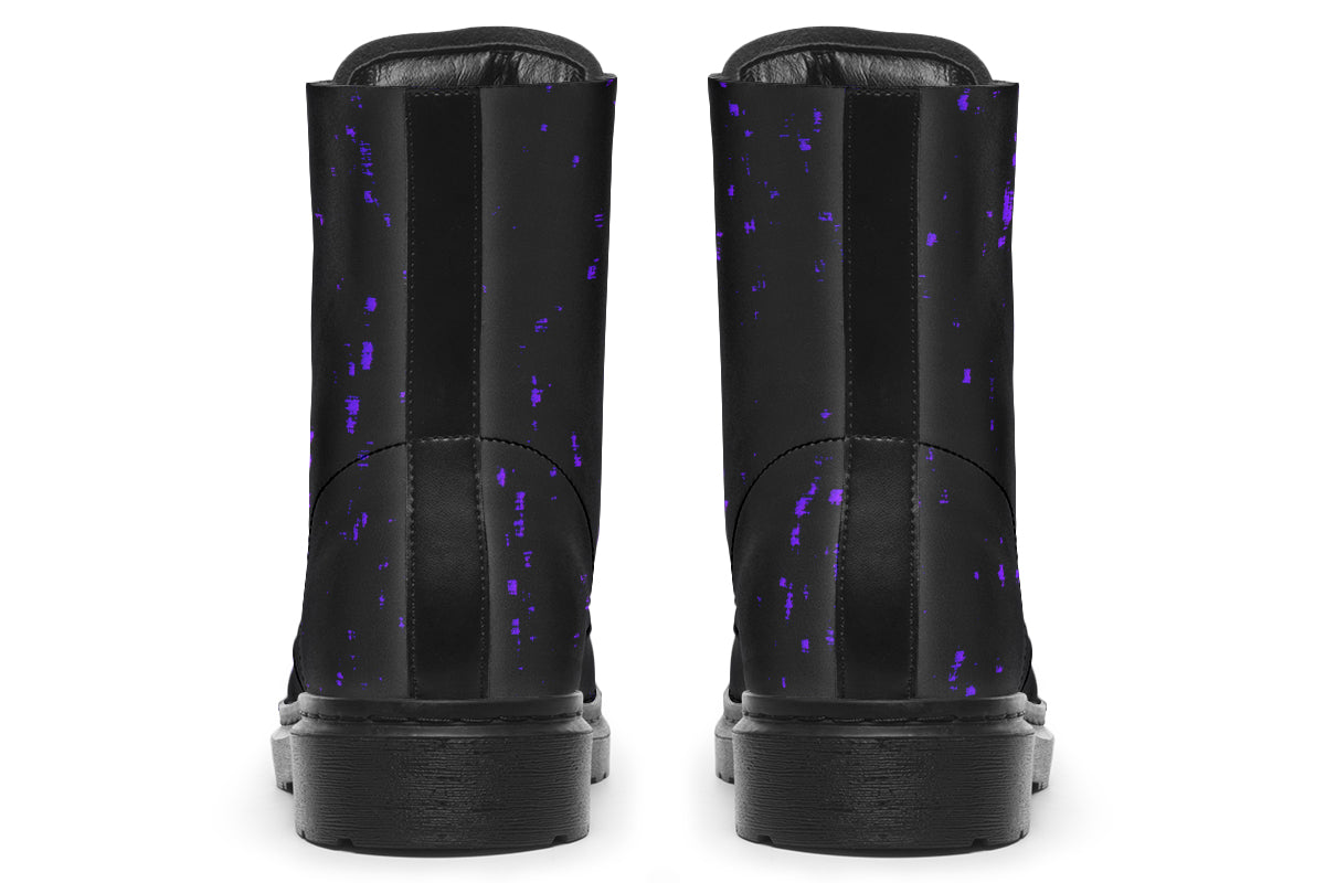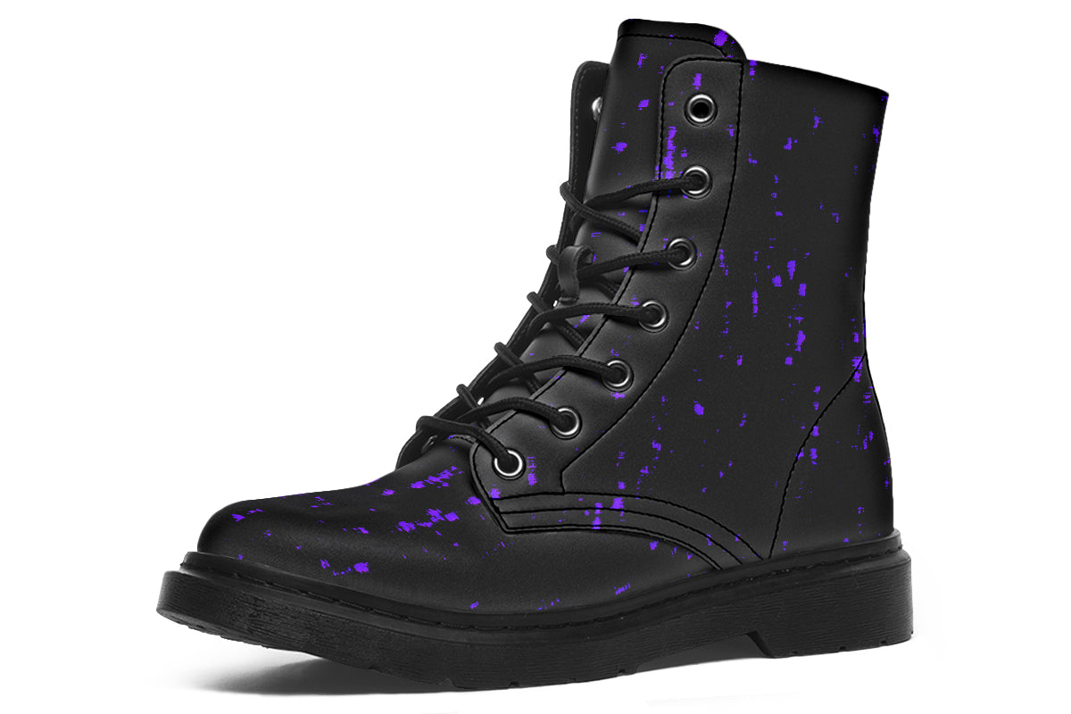 Fall? Never. The Never See Me Fall From Grace Boots are defiant, dark, and unapologetically bold. Featuring black vegan leather drenched in chaotic purple splatter, this is armour for the misfits, the rebels, and the beautifully unrepentant.