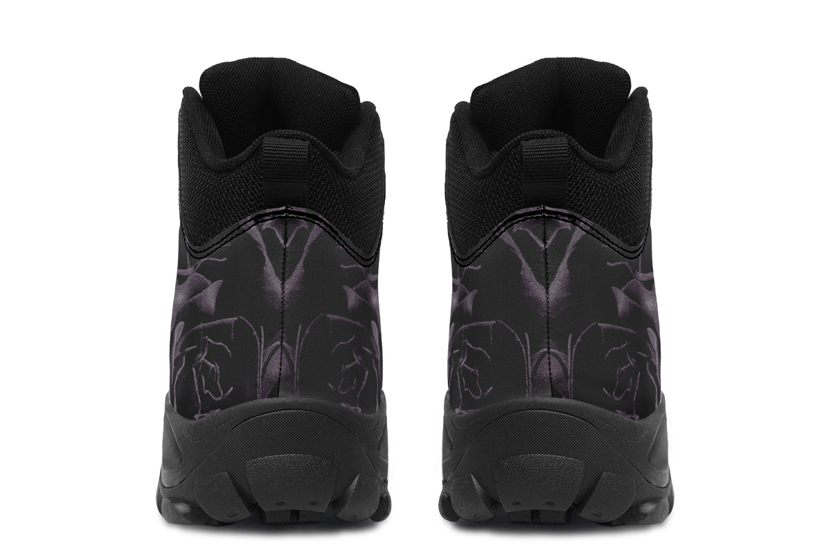 For a darker edge, the ANTIBrand Blackest Roses Outdoor Boots feature subtle black rose artwork by Kate across a sturdy lace-up profile. The understated design makes them versatile yet undeniably alt, while the rugged sole and padded collar ensure lasting comfort. Perfect for alternative style with practical wearability.