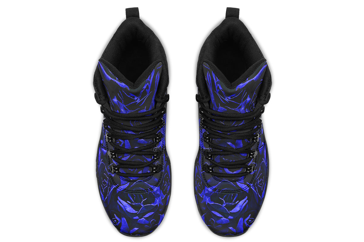 Bring dark romance to rugged wear with the ANTIBrand Blue Roses Outdoor Boots, featuring original artwork by Kate. These lace-up boots combine durability with alt aesthetics, showcasing vibrant blue roses against a black base. The chunky sole and padded collar ensure long-lasting comfort, whether on the streets or outdoors.