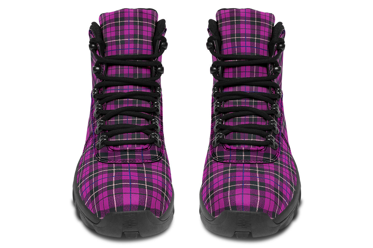 Bright, bold, and alternative – the ANTIBrand Pink Tartan Outdoor Boots bring rebellious colour to rugged footwear. With their pink and black tartan print, these boots are as eye-catching as they are practical. A padded collar and heavy-duty sole ensure comfort and grip, making them perfect for everyday wear or outdoor adventures.