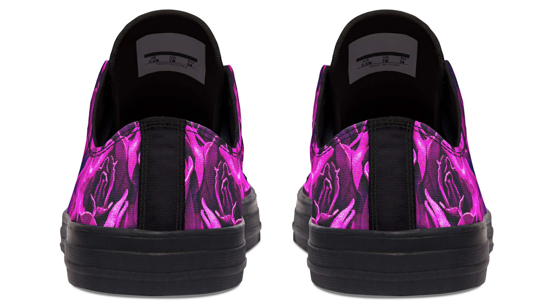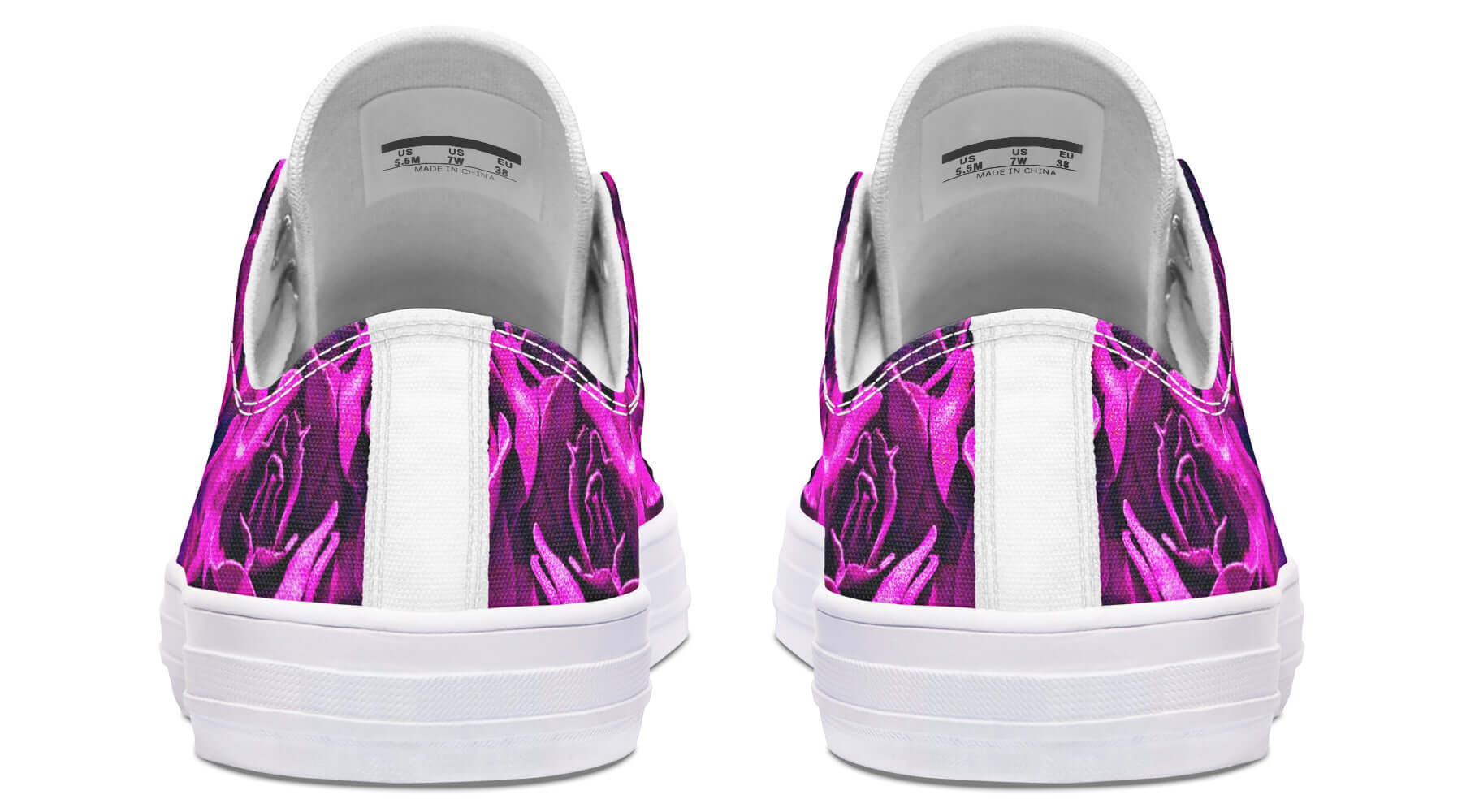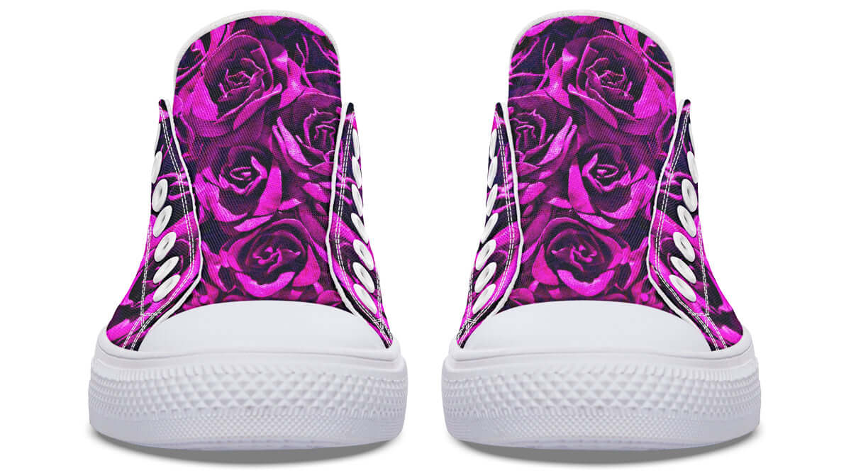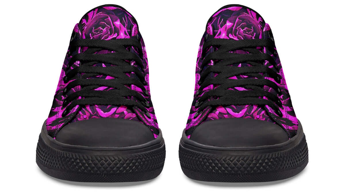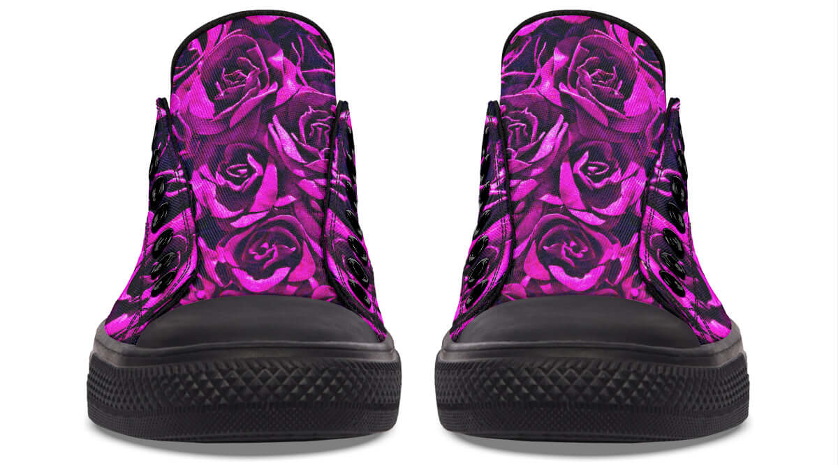 Step out with confidence in the Pink Roses Low Tops, where dark romance meets everyday comfort. These gothic canvas trainers are drenched in vibrant pink rose blooms over a stark black base—ideal for adding floral drama to your look.