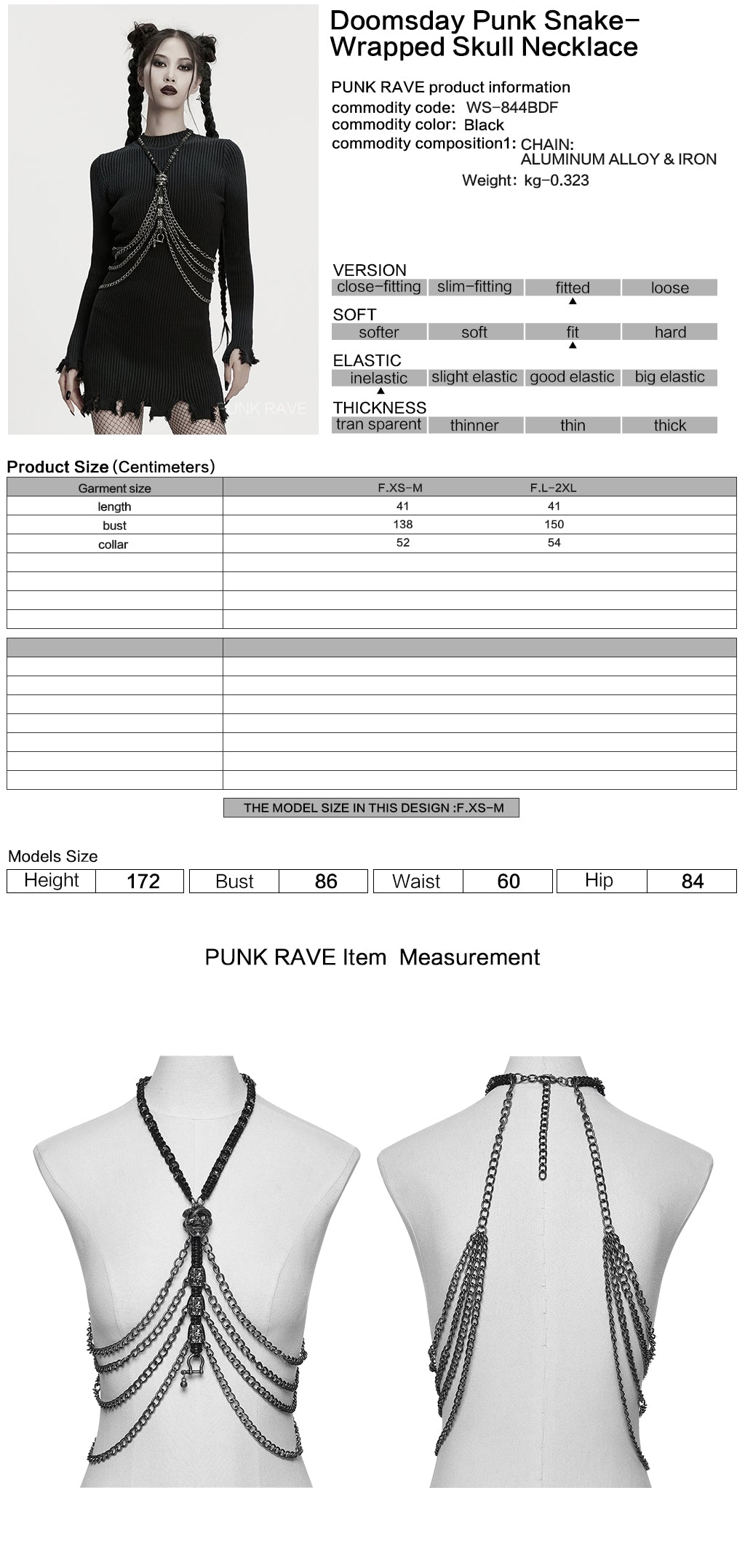 Turn heads and command attention with the Punk Rave Doomsday Punk Snake-Wrapped Skull Necklace — a show-stopping piece of statement body jewellery crafted for the unapologetically dark and stylish.