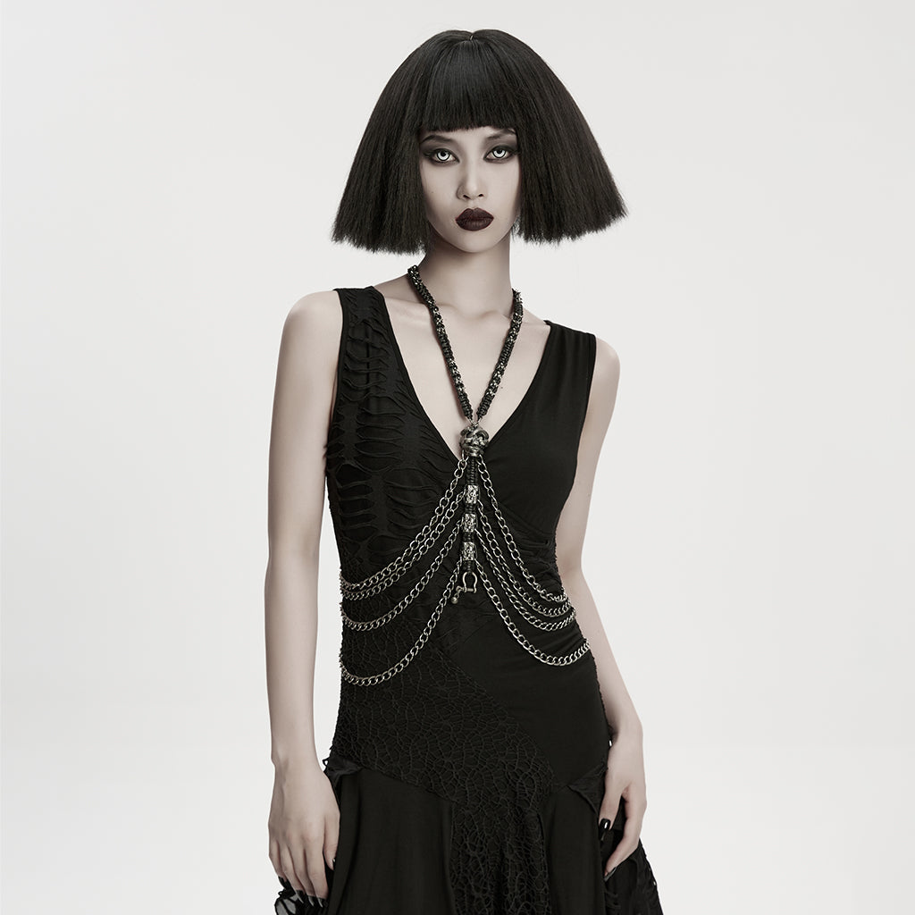 Whether you’re heading to a concert, club, or photo shoot, this chain harness elevates any outfit with a distinct post-apocalyptic punk aesthetic.