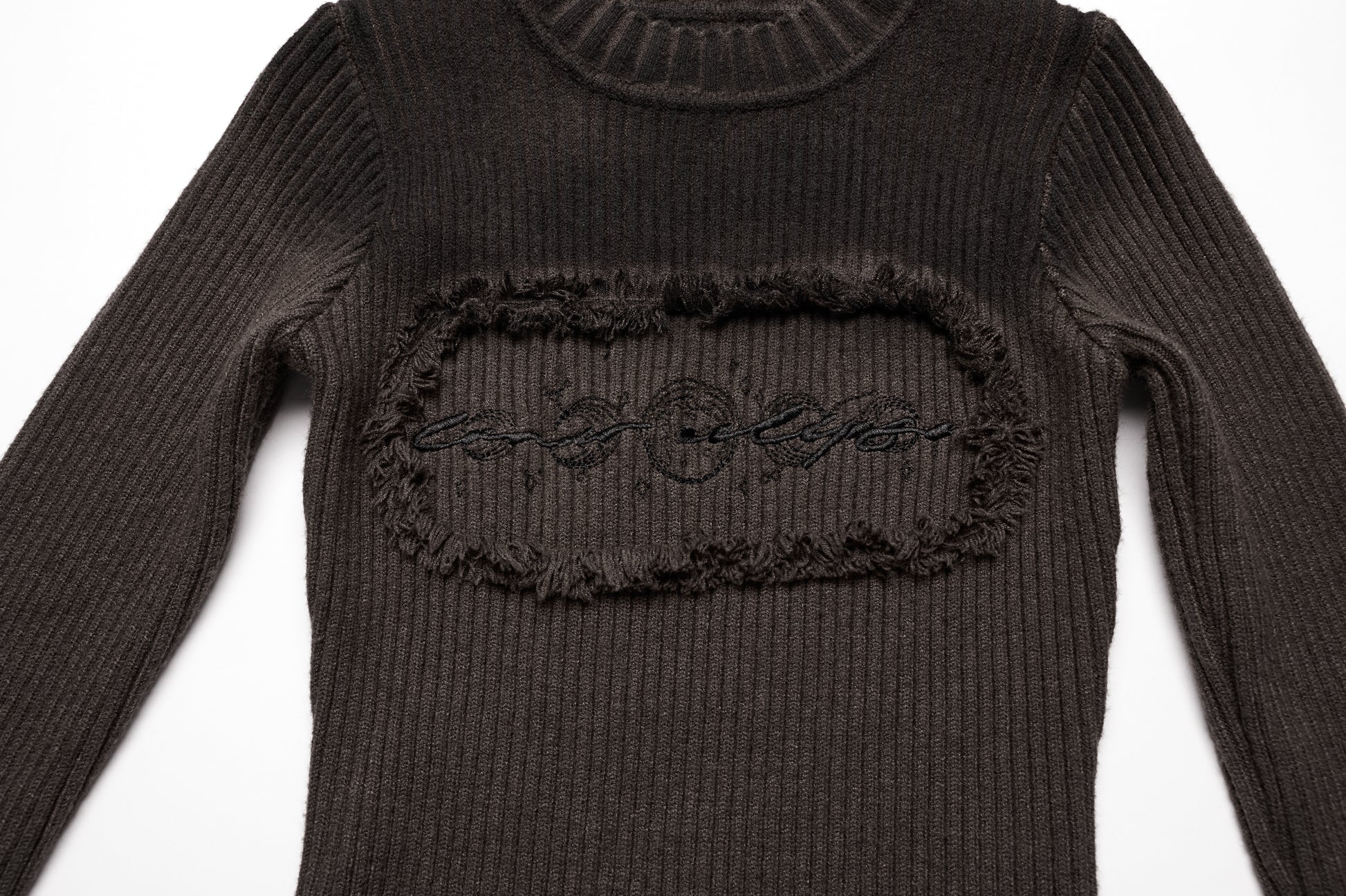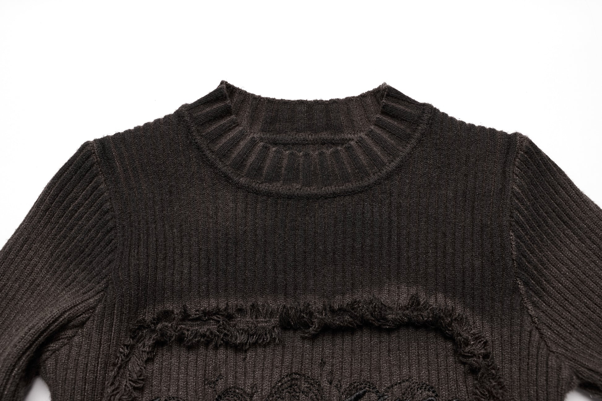 Velvet‑flocked mesh upper with high ruffle collar and caped shoulders