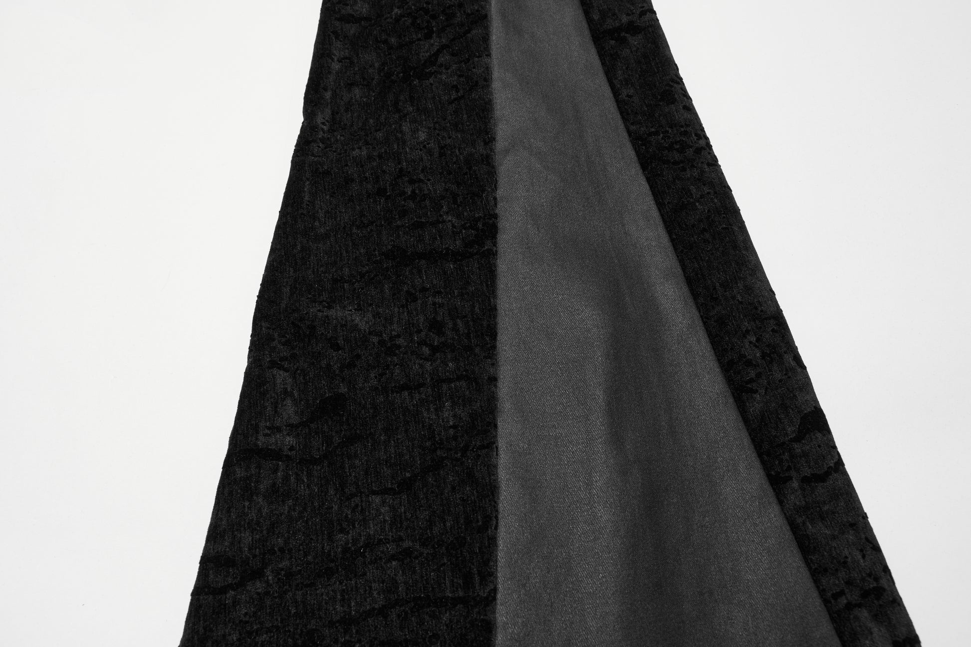 Command attention with the Punk Rave Morrigan Wasteland Tassel Flare Goth Pants – Black. Crafted from plush retro woven fabric and sleek rubberised panels, these trousers blend rebellious spirit with high-fashion edge. The fitted upper and dramatic flared legs are enhanced with clever fabric splicing to flatter your shape, while the cascading tassels add movement and a distinctive wasteland-inspired flair. Perfect for goth, punk, and alternative wardrobes, these statement pants are made for those who refuse to blend in.